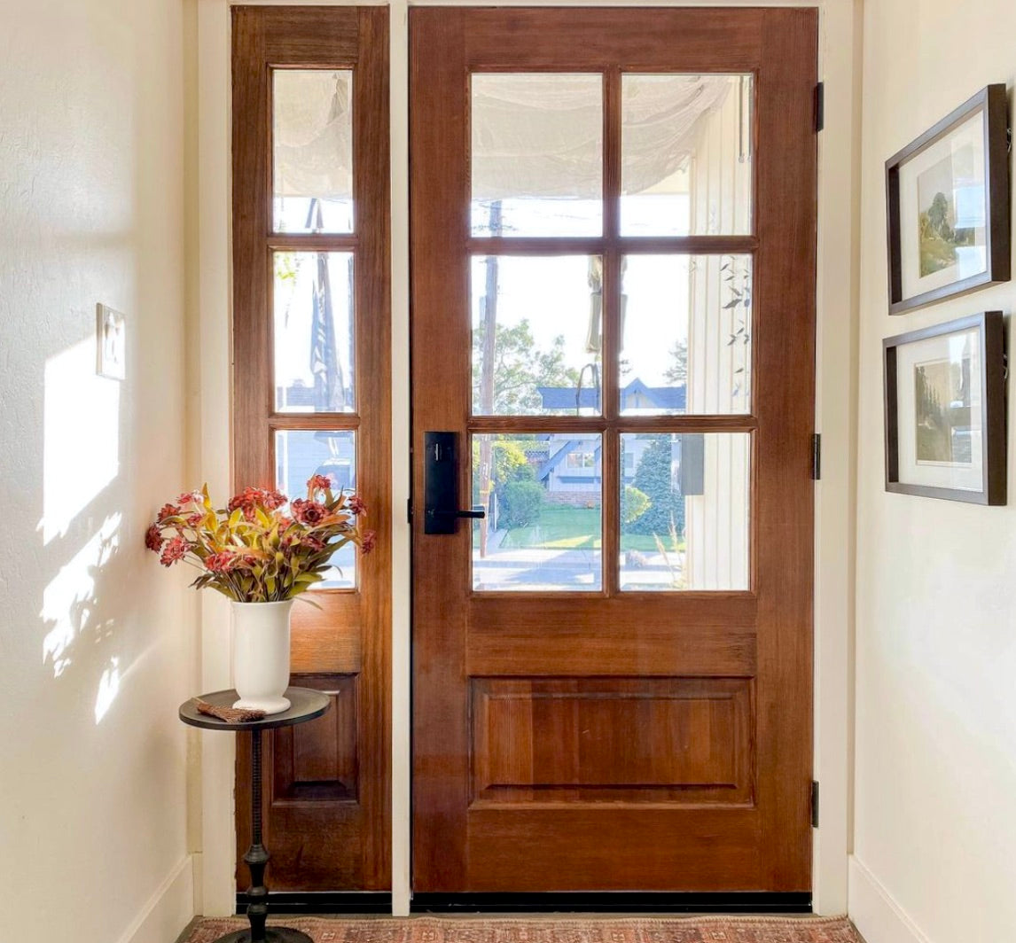 The PINNACLE Craftsman 6 Lite Glass Window Wood-Like Texture Fiberglass Exterior Door from Krosswood Doors embraces Modern design and simple, yet thoughtfully made architecture.