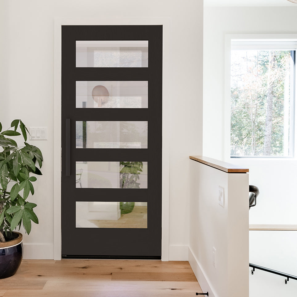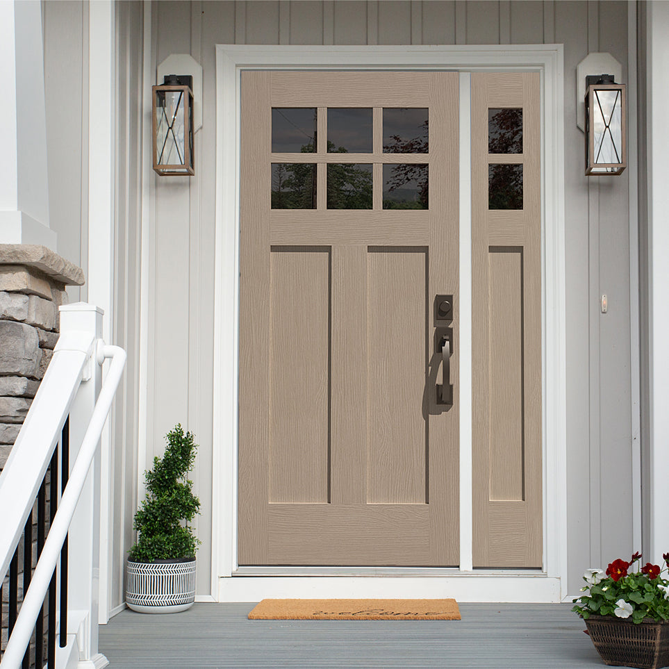 The PINNACLE Craftsman 6 Lite Glass Window Wood-Like Texture Fiberglass Exterior Door from Krosswood Doors embraces Modern design and simple, yet thoughtfully made architecture.