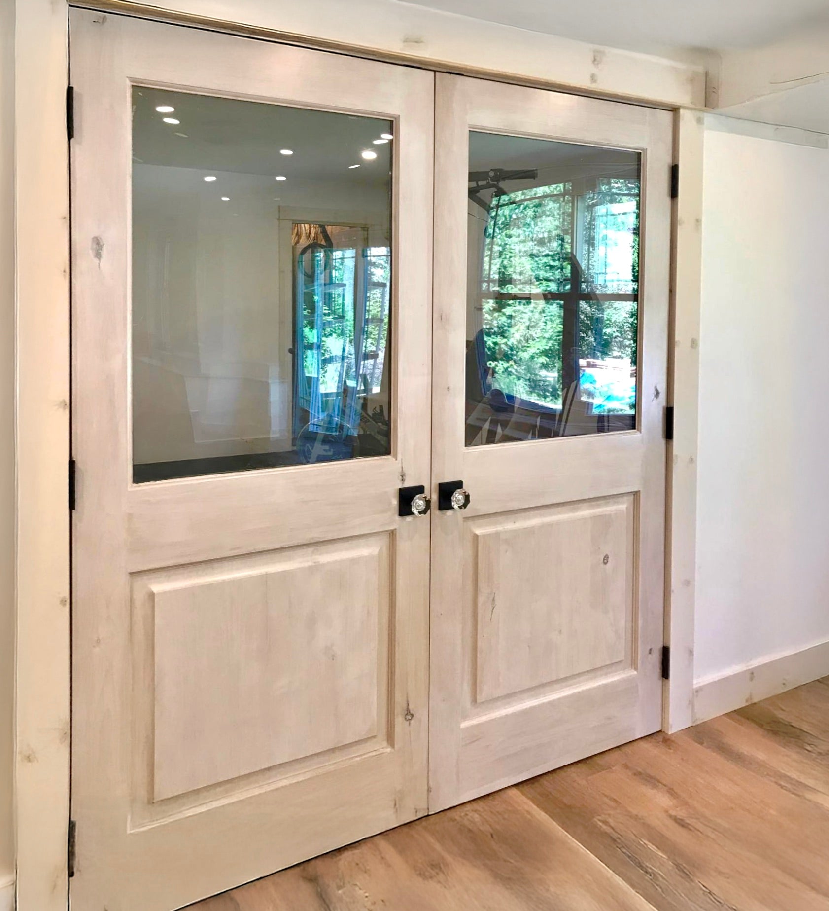 Deep knots are artfully filled with black epoxy resin to enhance the unique character of each door