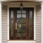Combine glass together with the warmth of natural wood to create a bright entryway for your home with the Knotty Alder 12 Lite Clear Glass Exterior Door from Krosswood Doors. This timeless solid wood door is made with doweled construction and features unique knotting with twelve clear glass window panels to allow natural light to flow through. Start your renovation journey today with our selection of size, layout, and stain options.