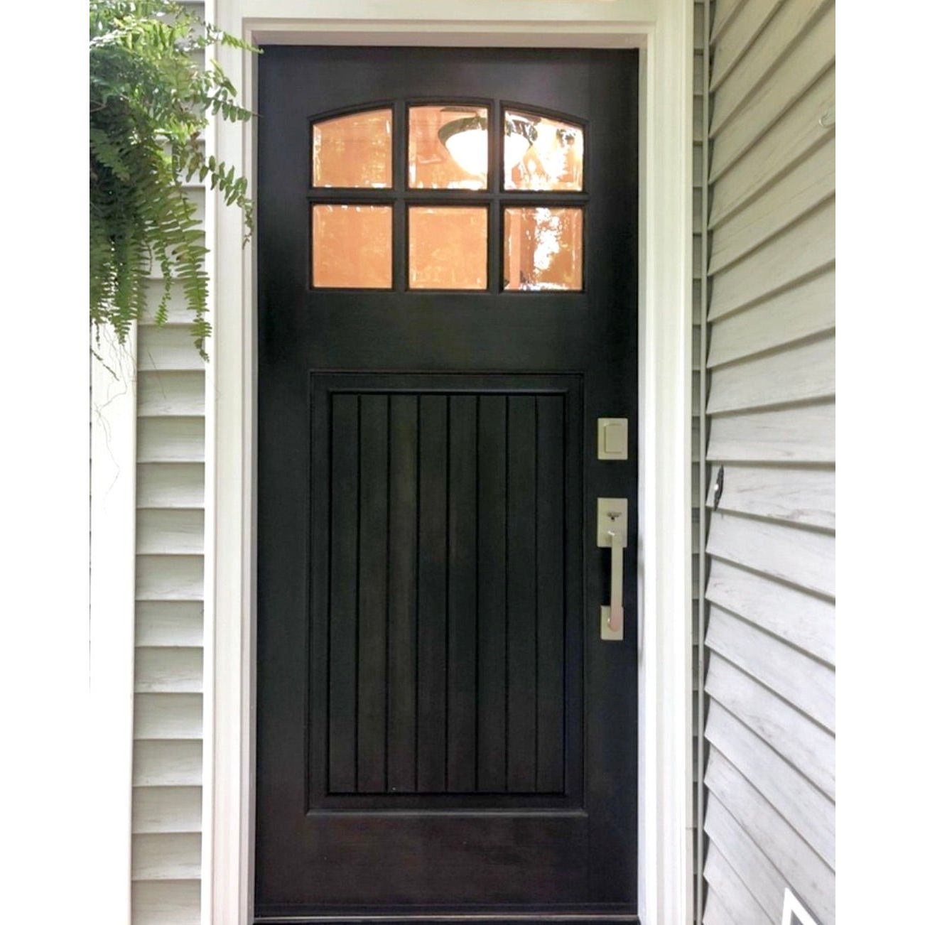 Create a Craftsman-style entryway for your home or business with our timeless Hemlock Wood 6 Lite Arch Top Exterior Door by Krosswood Doors. This stunning solid wood door is made of rot-resistant hemlock which is perfect for painting or staining, and features six clear glass windows and a hand-finished V-groove panel. Create your perfect door today with our customizable stain, size, and layout options.