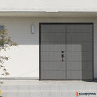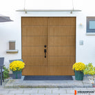 Engineered for strength and longevity, the TETON Modern Fiberglass Grooved Flat Panel Front Double Door from Krosswood Doors seamlessly combines the durability of fiberglass with the rich allure of a mahogany wood-like textured surface. A high-density insulating core and horizontal grooved panel design offers the long-lasting comfort you need to create a stunning exterior for any modern, contemporary, or traditional home. Customize your perfect exterior door today with one of our six wood stain options – expertly applied in the United States at the time of purchase – or order unfinished, ready to paint or stain in your color preference.