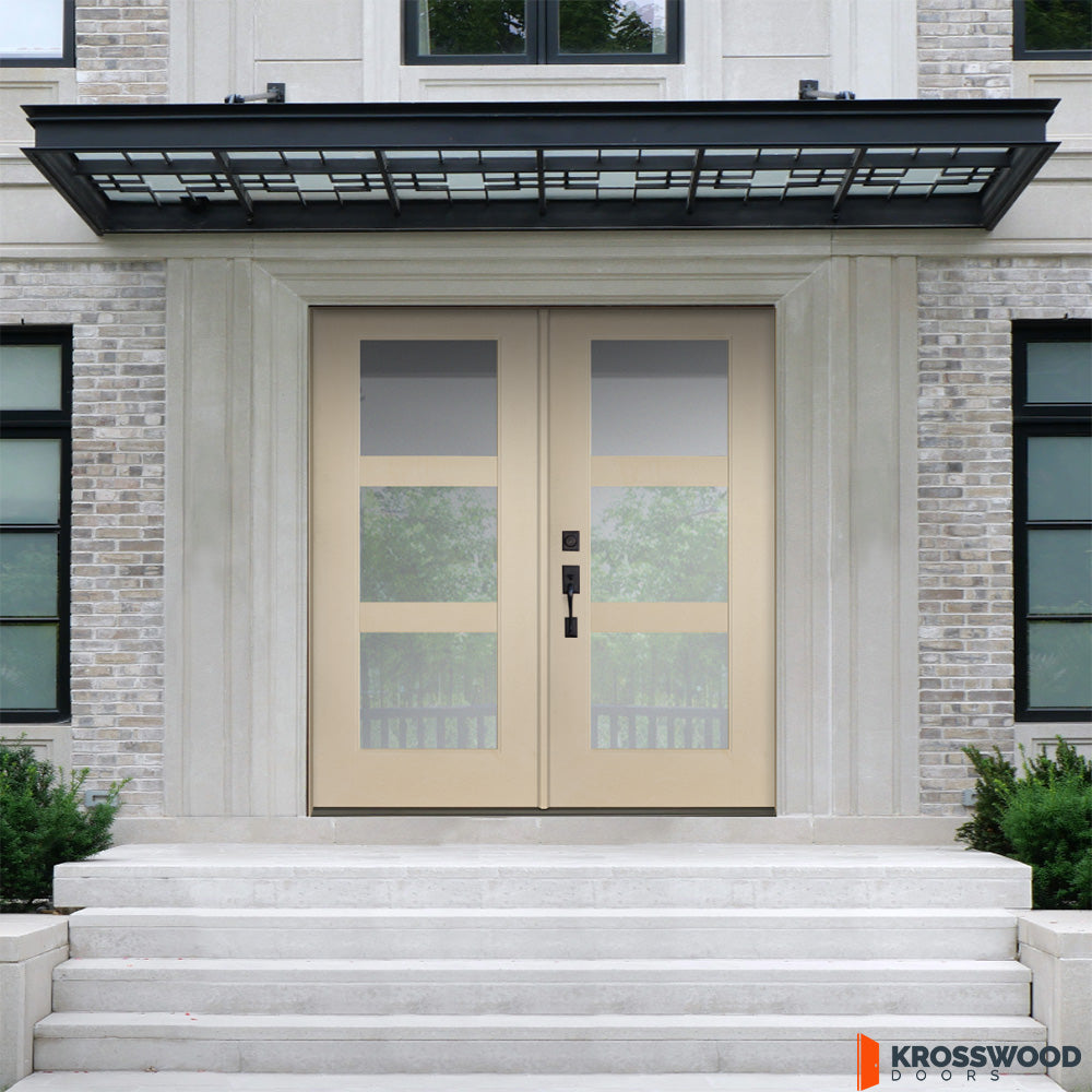 BRIGHTON Modern Fiberglass 3 Lite Frosted Glass Double Door