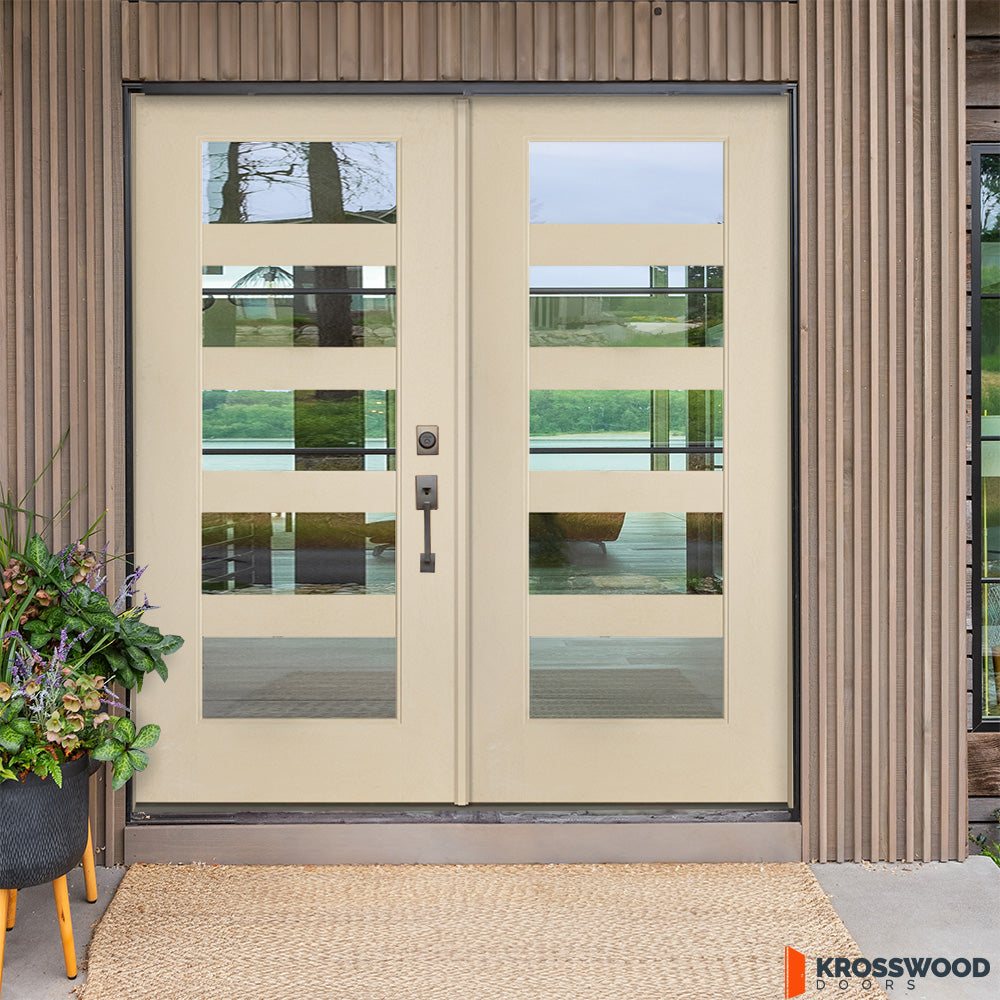 ASCEND Modern Fiberglass 5 Lite Clear Glass Double Door