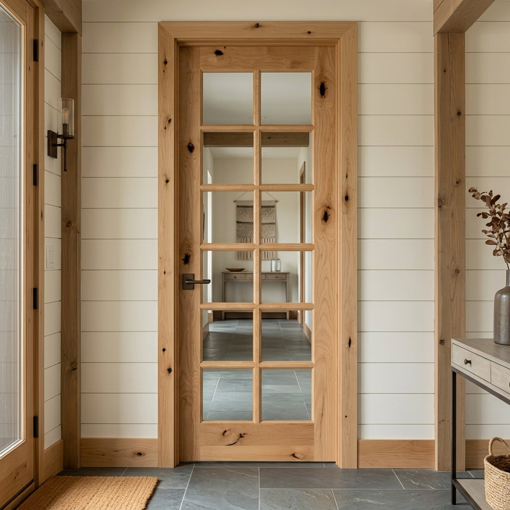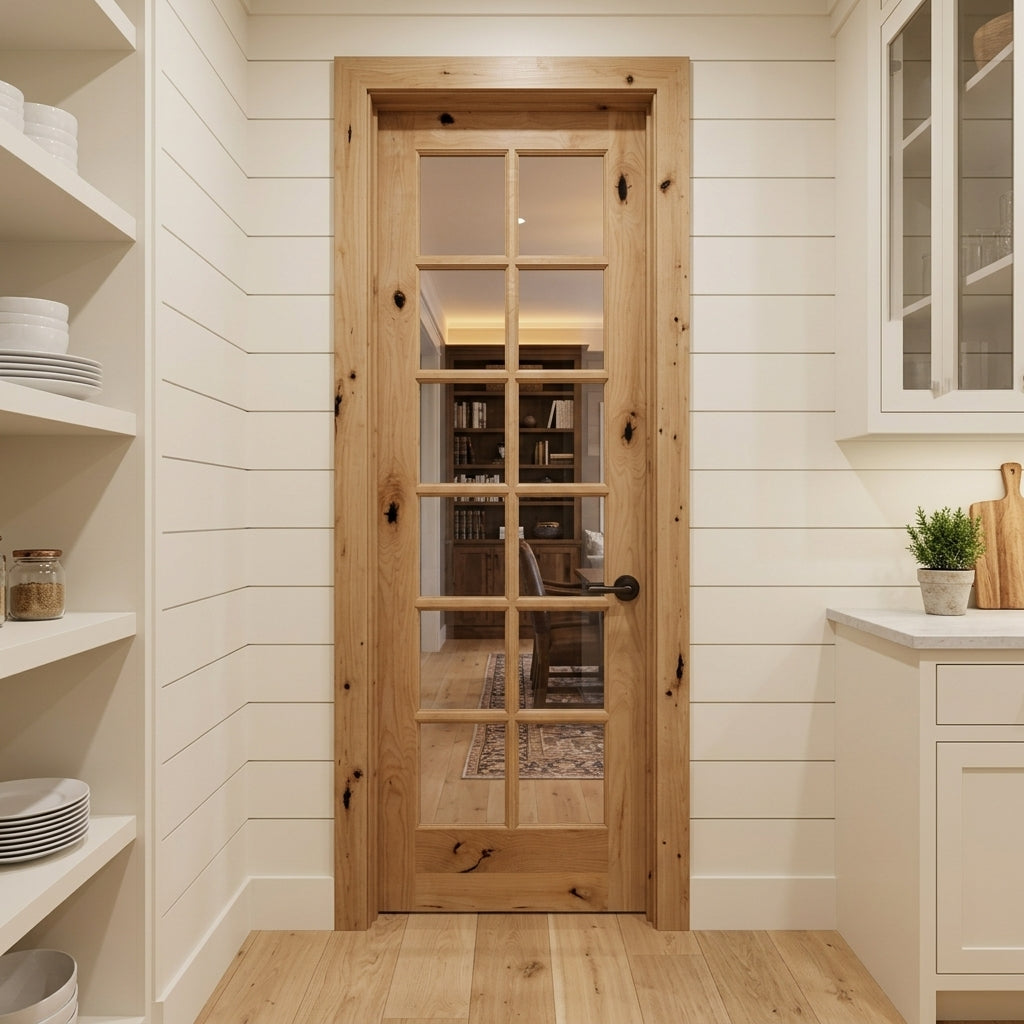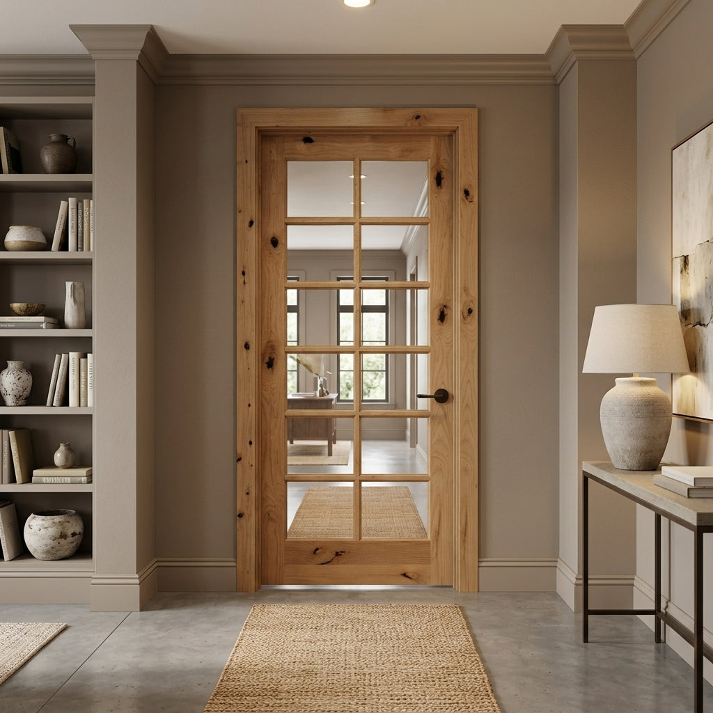 French Knotty Alder Wood 12 Lite Clear Glass Interior Door