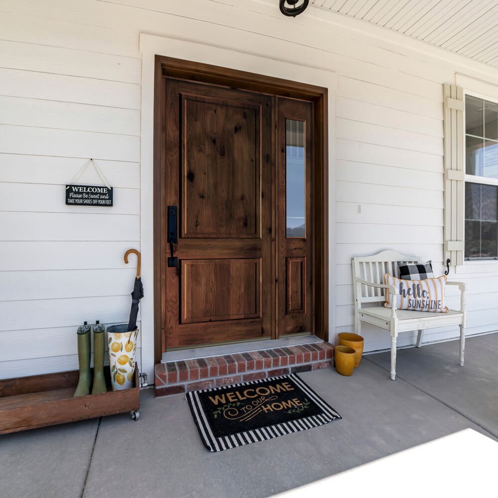 Adequate overhang is critical to the life and performance of exterior wood doors. In order to qualify for your warranty, you should have sufficient coverage to protect your doorfrom weather damage.