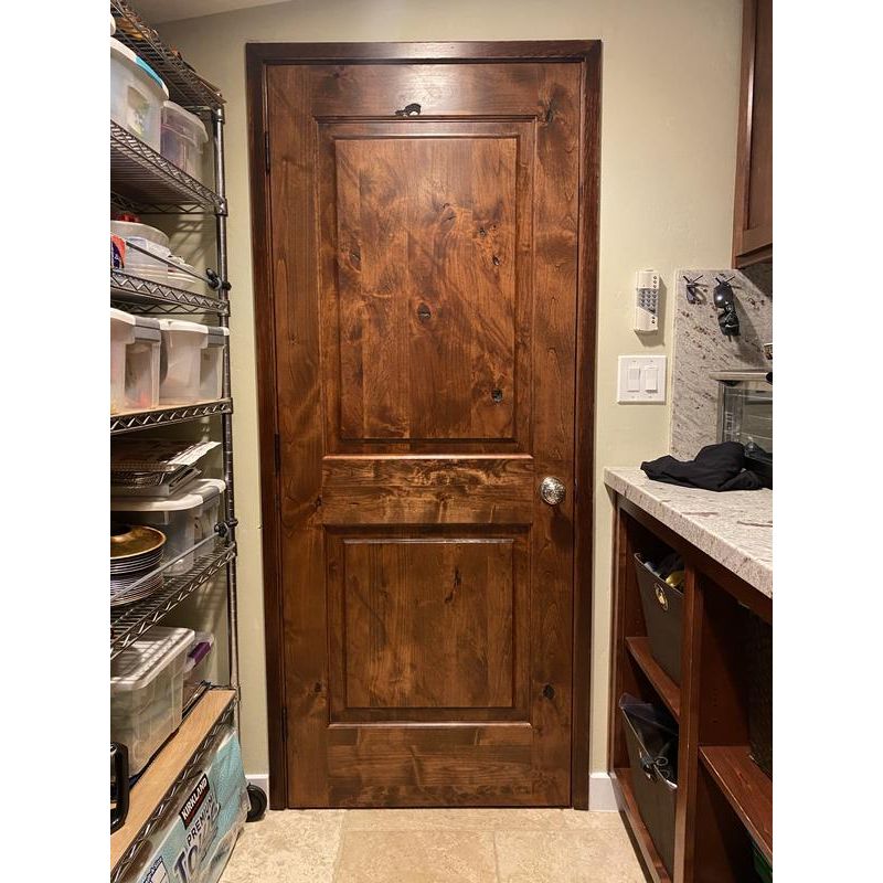 The Rustic Knotty Alder Wood 2 Panel Square Top Exterior Door from Krosswood Doors blends raw elegance with superior craftsmanship to create a one-of-a-kind wood door for your entryway. Our doors are engineered for strength and longevity and feature unique, textured knotting and natural wood grain to show off the individuality of your Midcentury Modern or Craftsman cottage home. Discover your perfect front door today with our customizable sizes, layouts, and stain options.