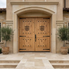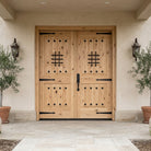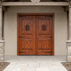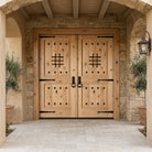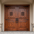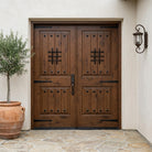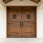 Reminiscent of sun-soaked European architecture, the Mediterranean Knotty Alder Square Top V-Groove Speakeasy Front Double Door from Krosswood Doors features luxurious wood grain, textured knotting, decorative iron details, and two unique speak-easy windows with a functioning latch. Our doors are crafted with superior doweled construction and hand-finished in the United States to ensure that each one is a true work of art. Customize your perfect door today with our selection of size, layout, and stain options.