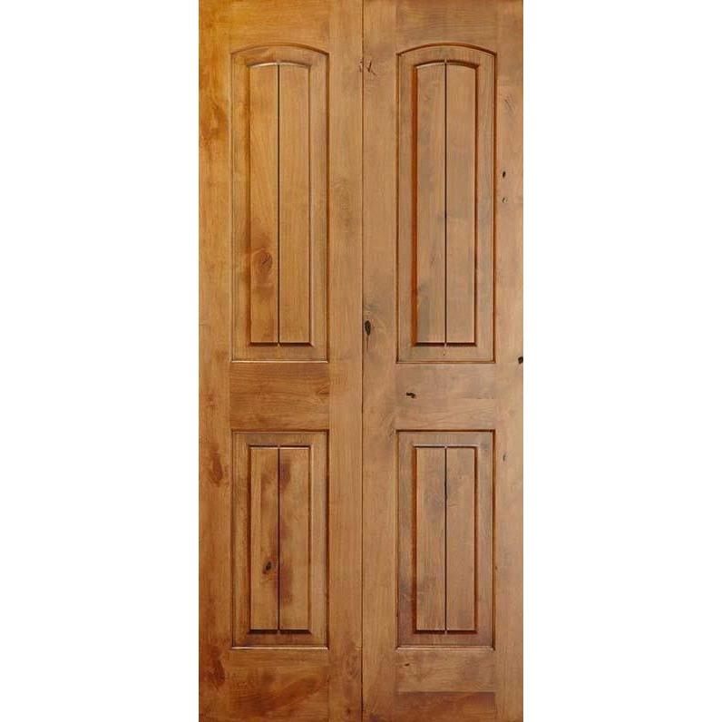 Rustic Arch Top V- Groove Knotty Alder Wood Bifold Closet Door