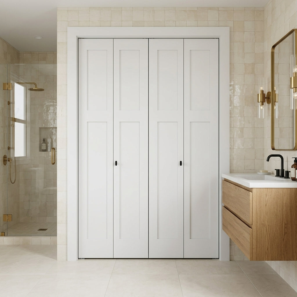Craftsman Primed MDF Bifold Double Door with Hardware