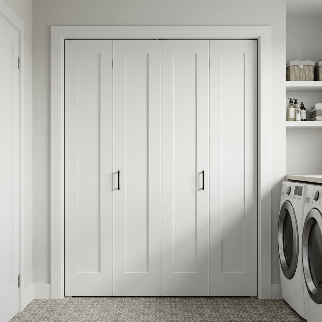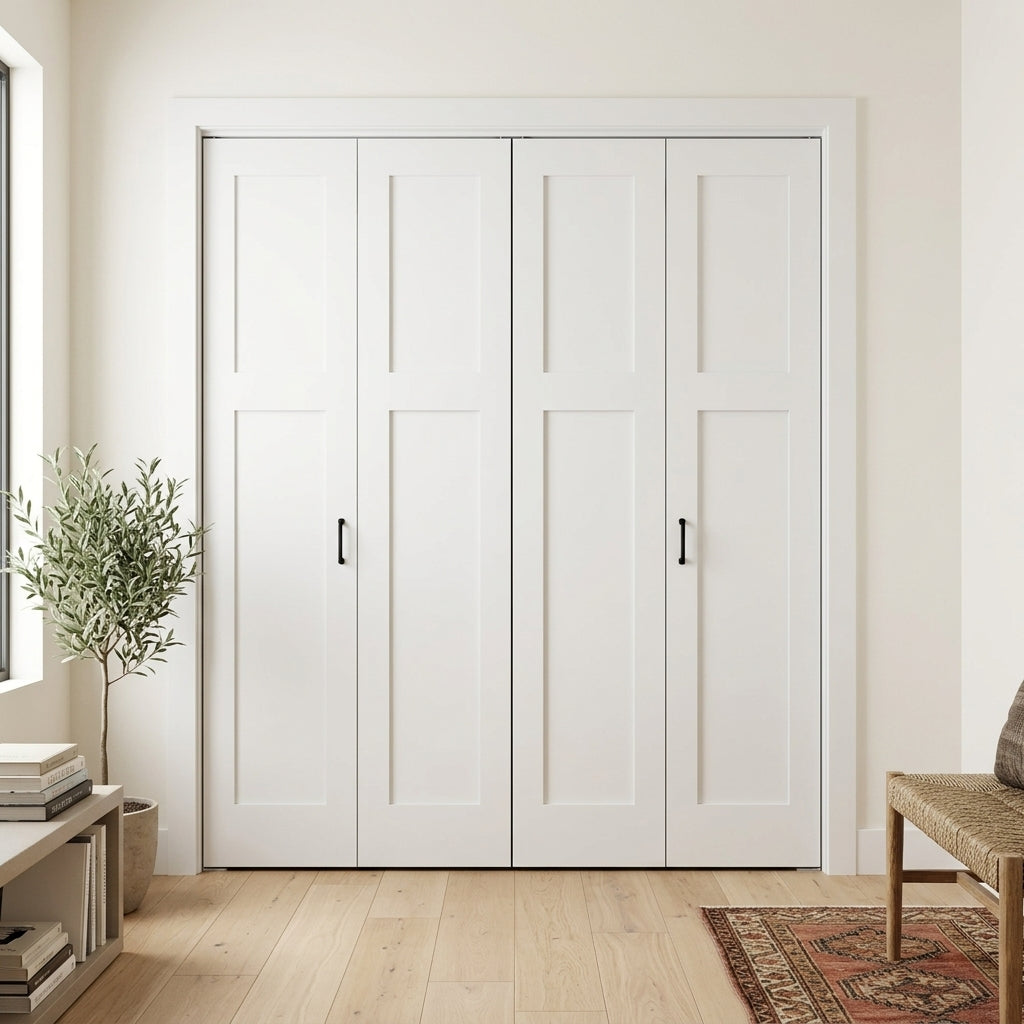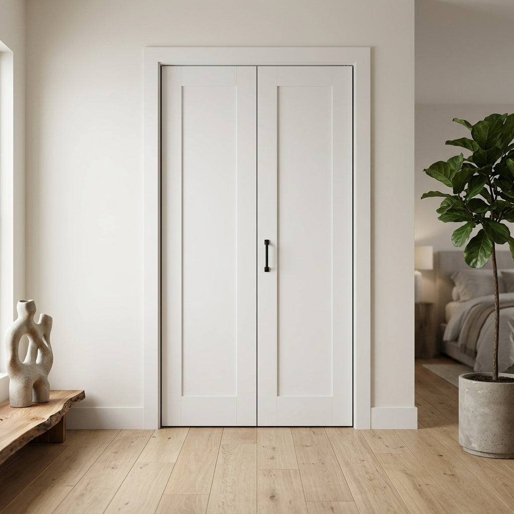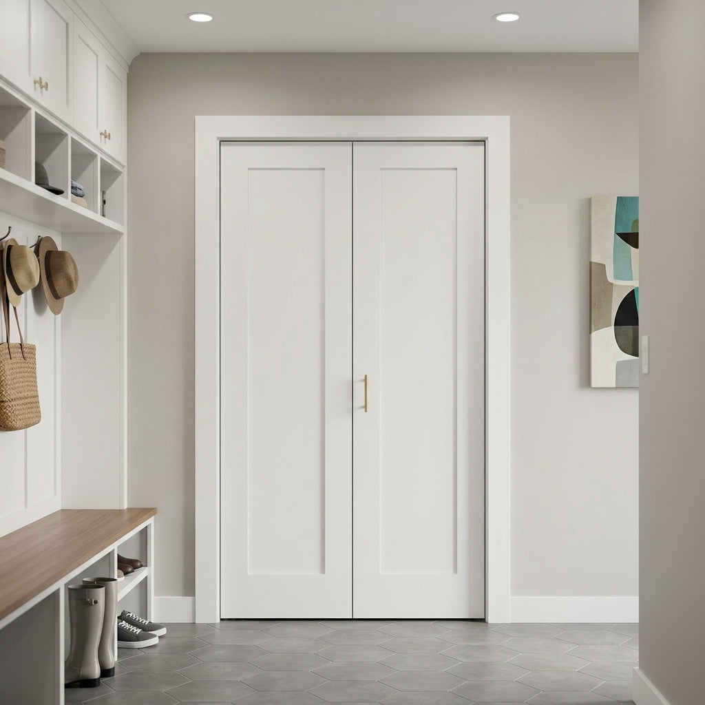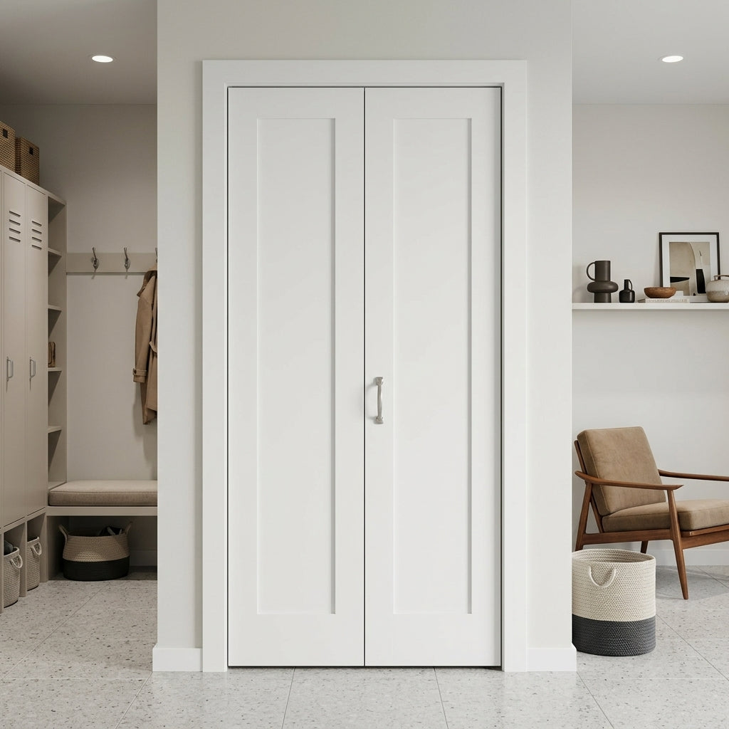Shaker Single Panel Primed MDF Bifold Double Door with Hardware