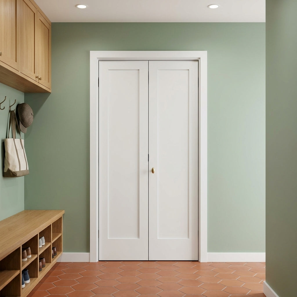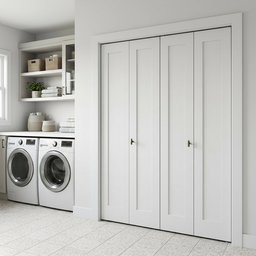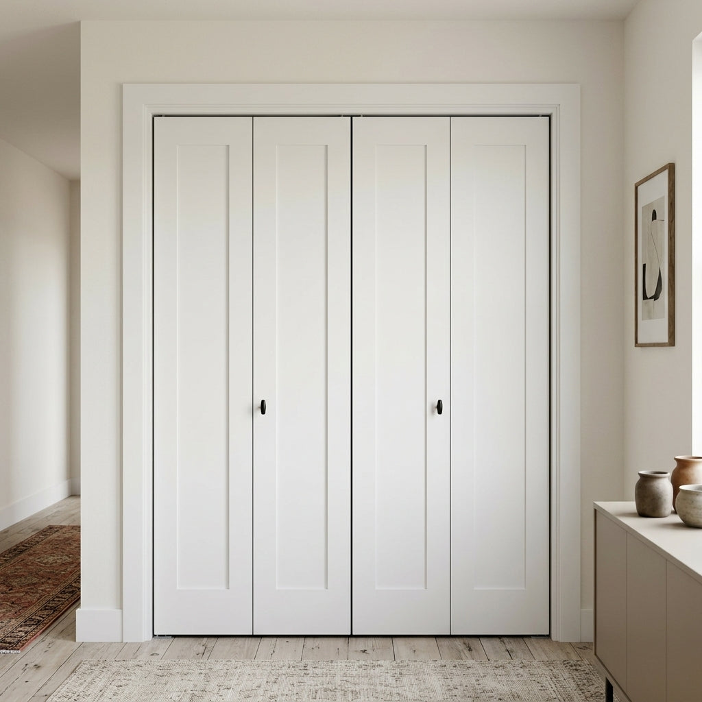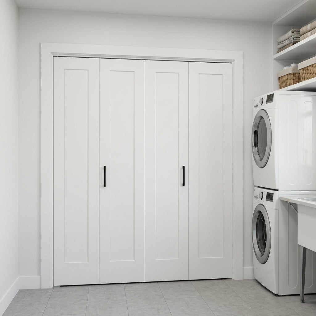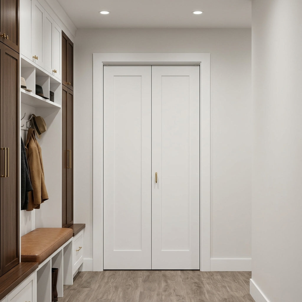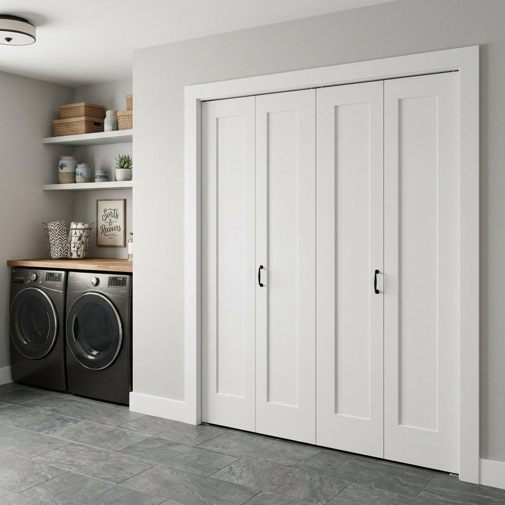 Shaker Single Panel Primed MDF Bifold Double Door with Hardware