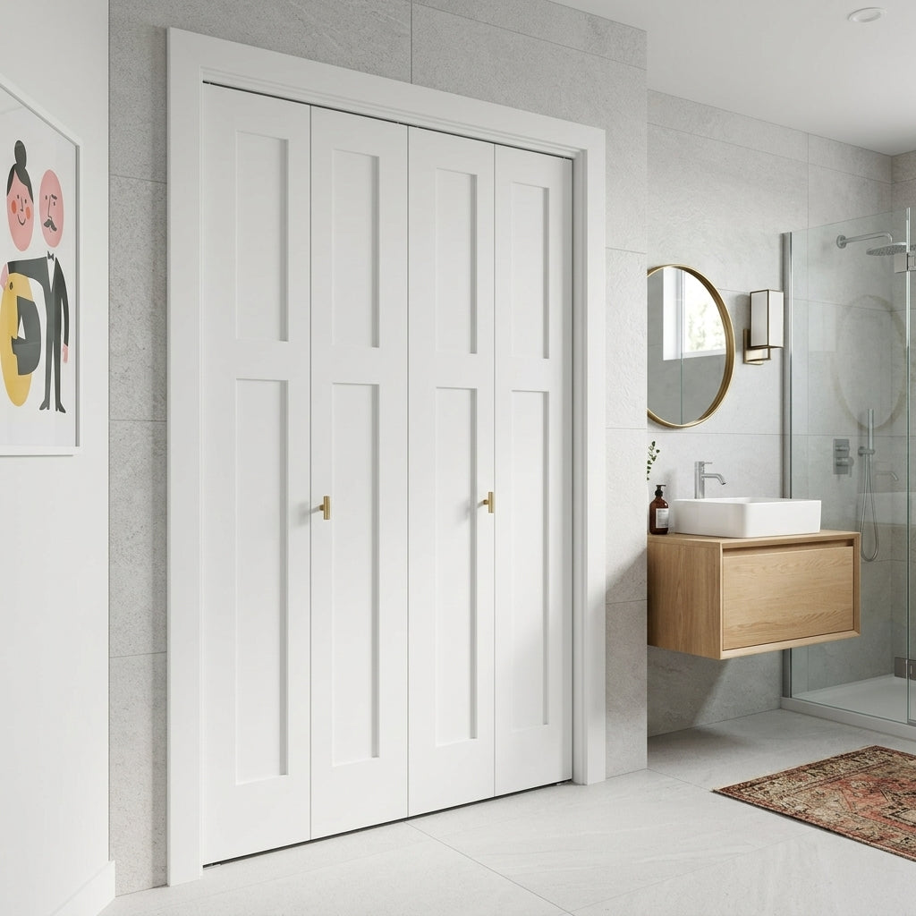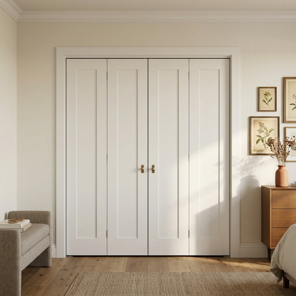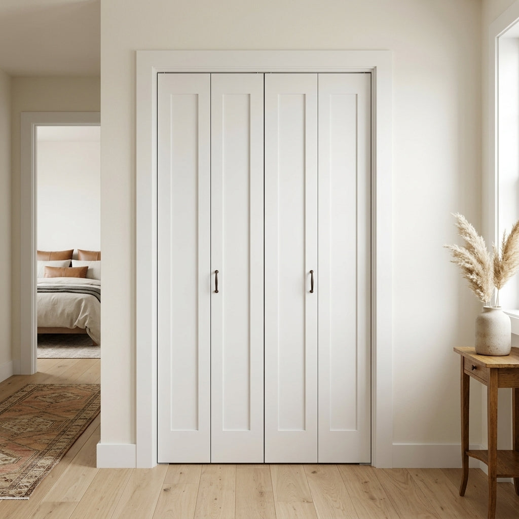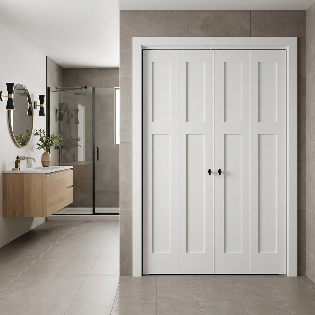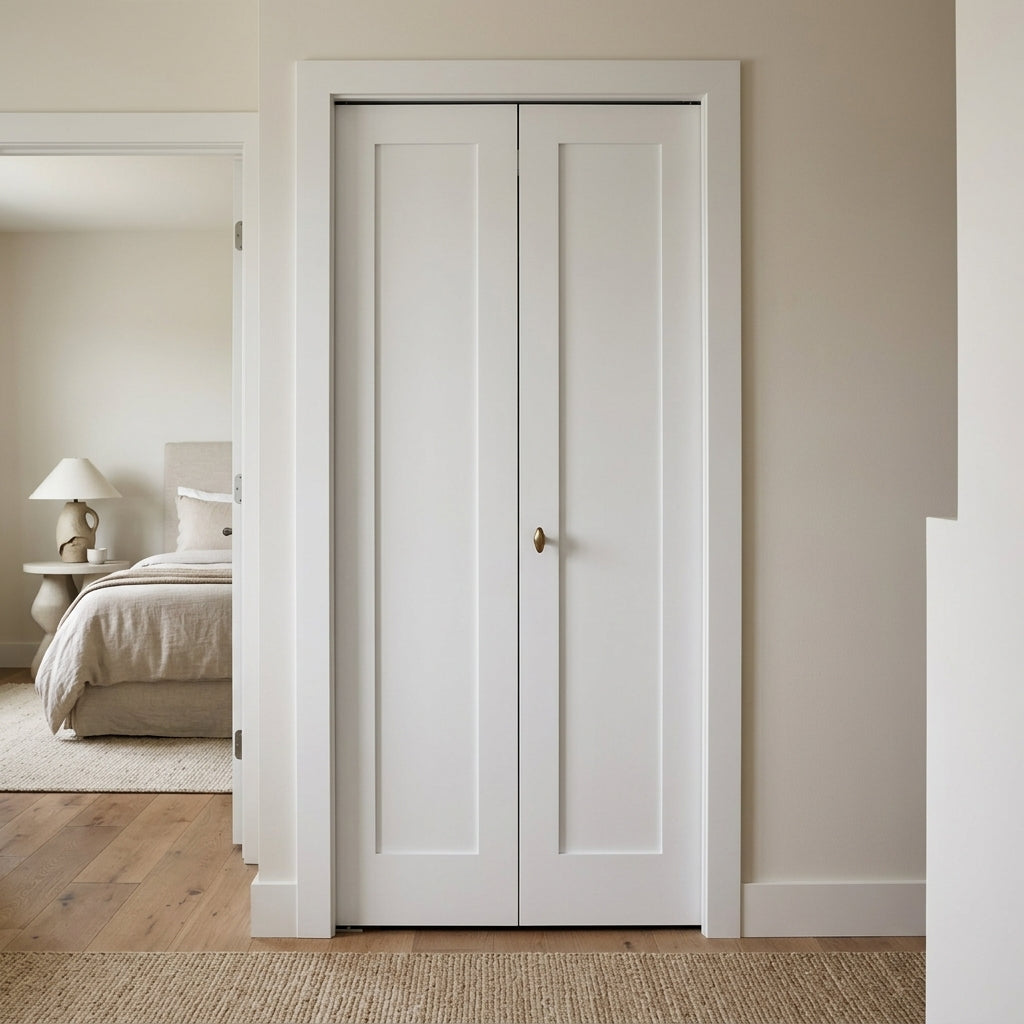 Shaker Single Panel Primed MDF Bifold Double Door with Hardware