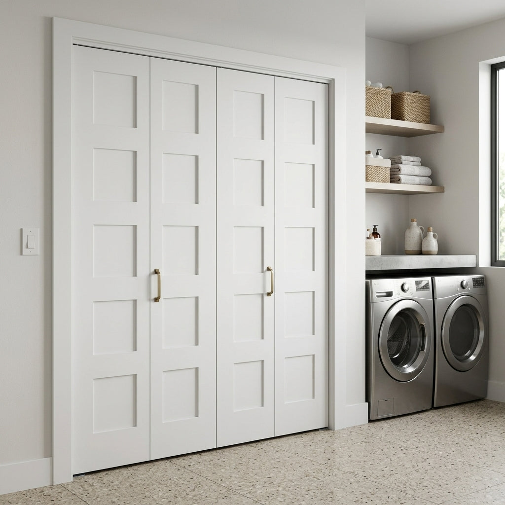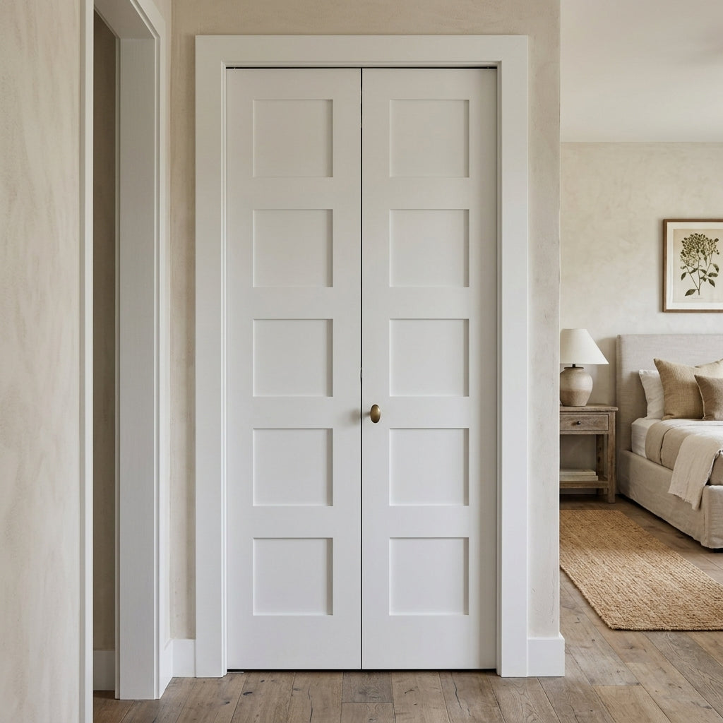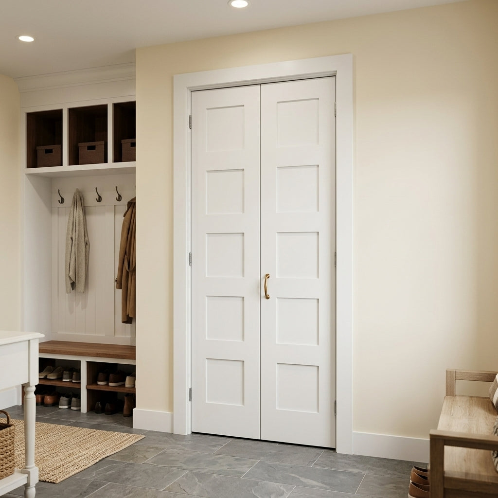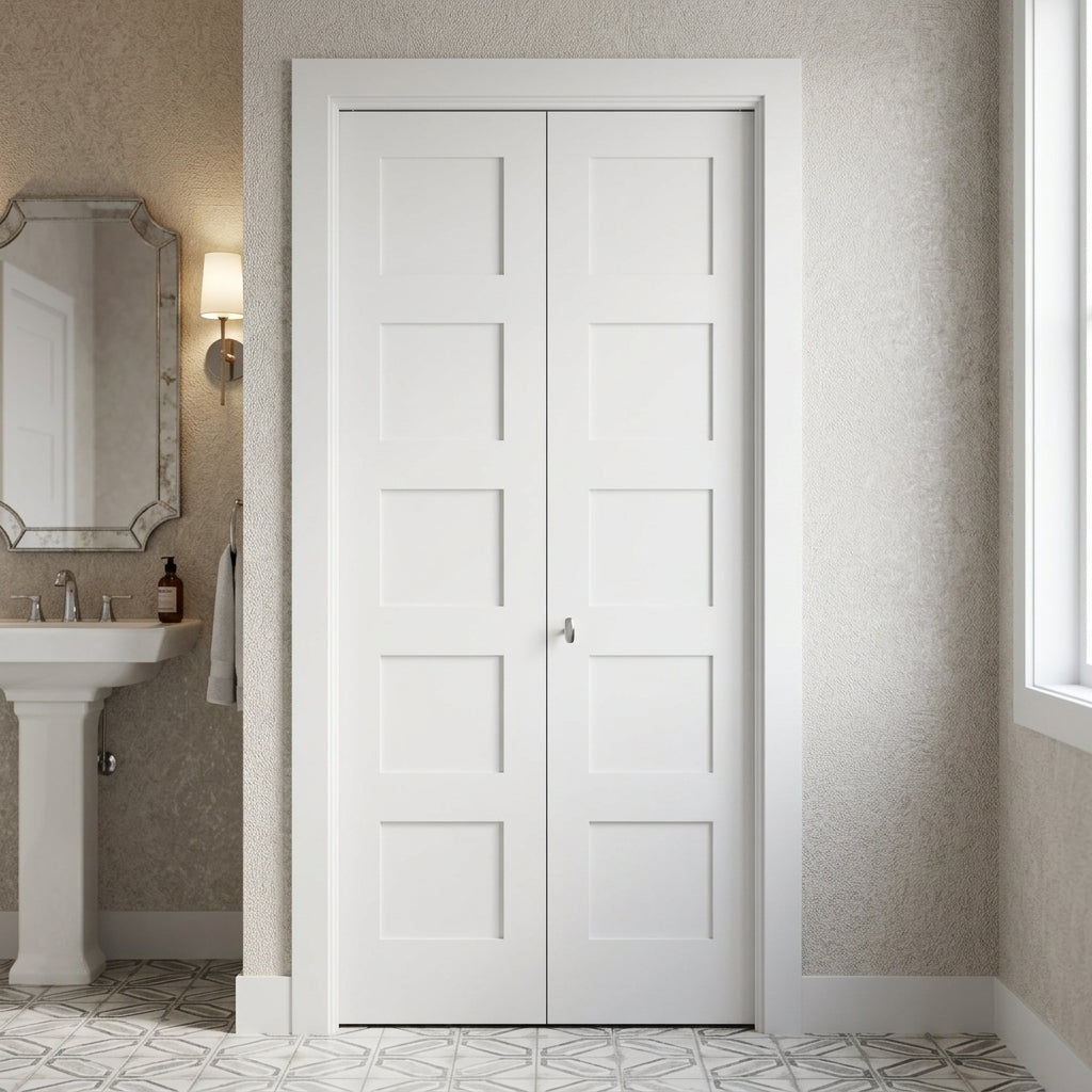 Shaker 5 Panel MDF Bifold Double Door with Hardware