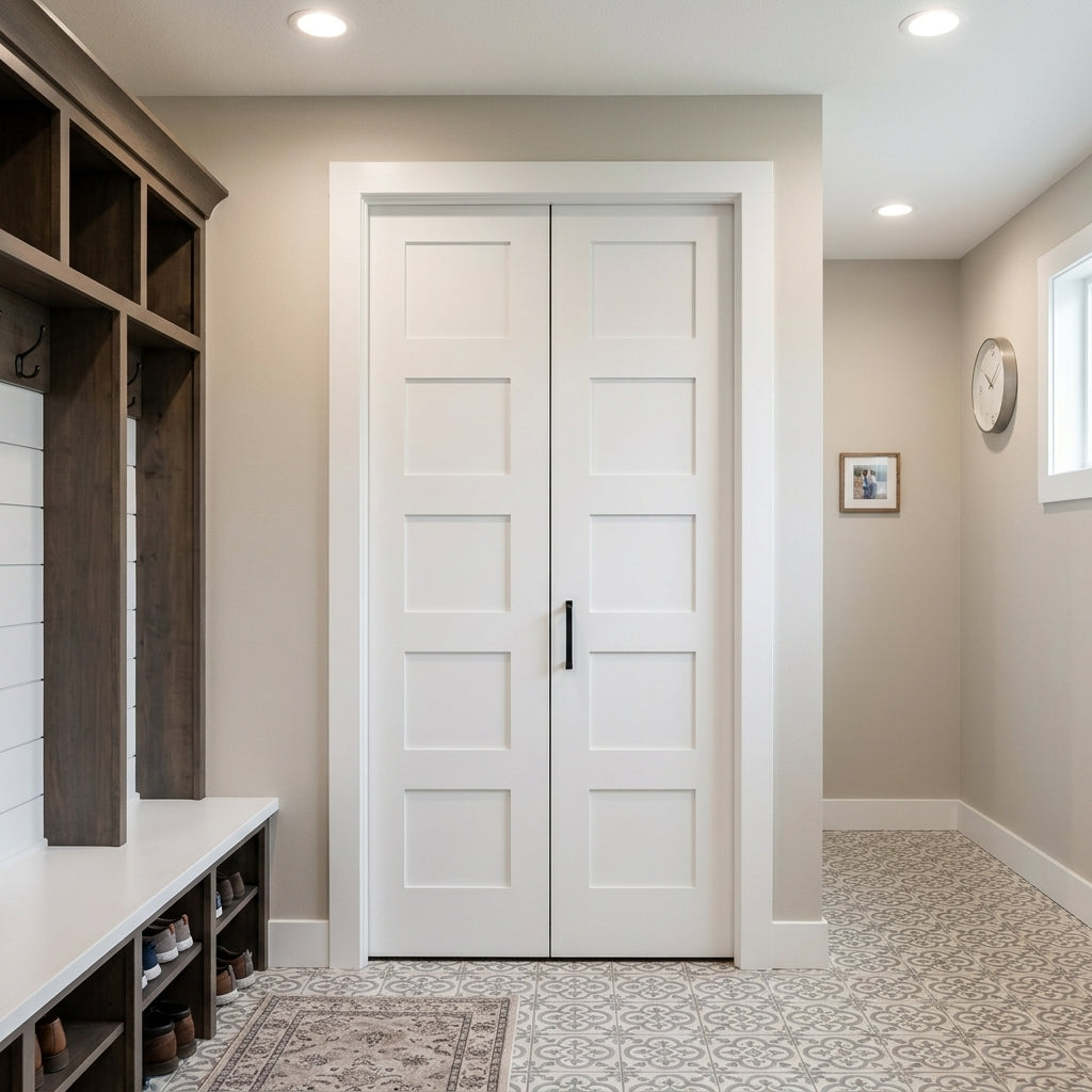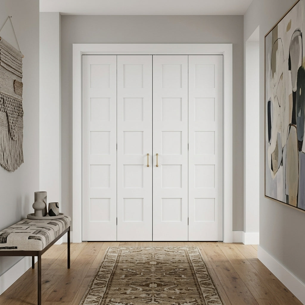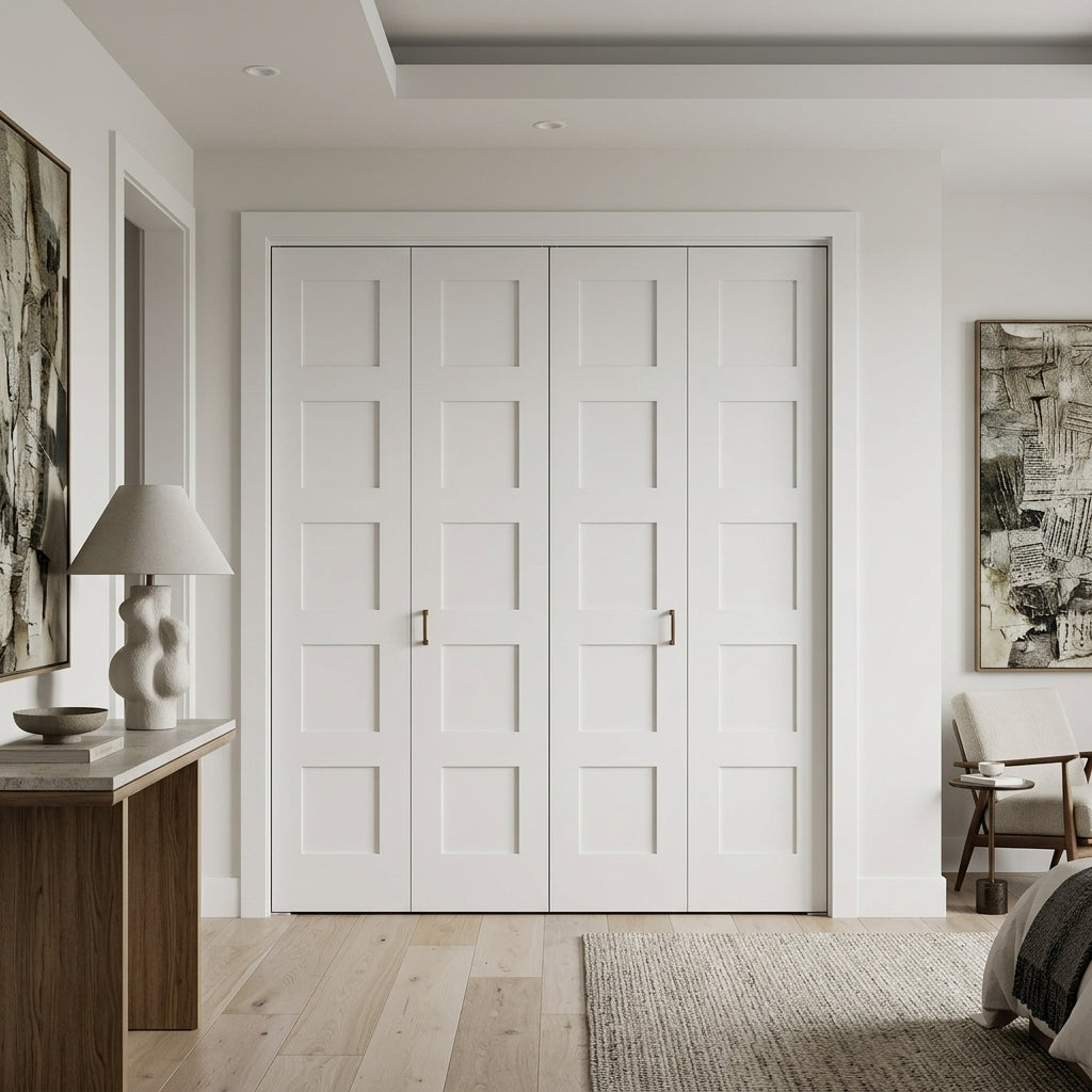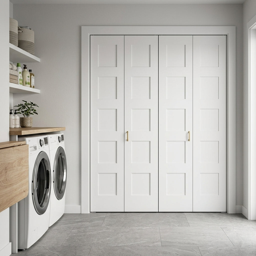 Shaker 5 Panel MDF Bifold Double Door with Hardware