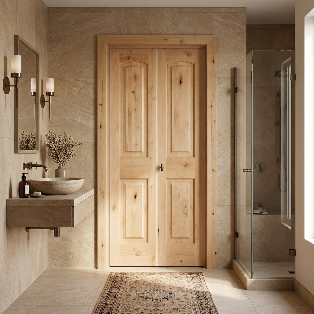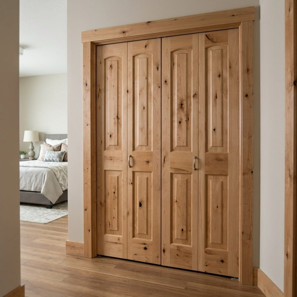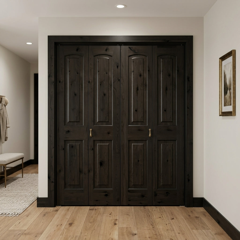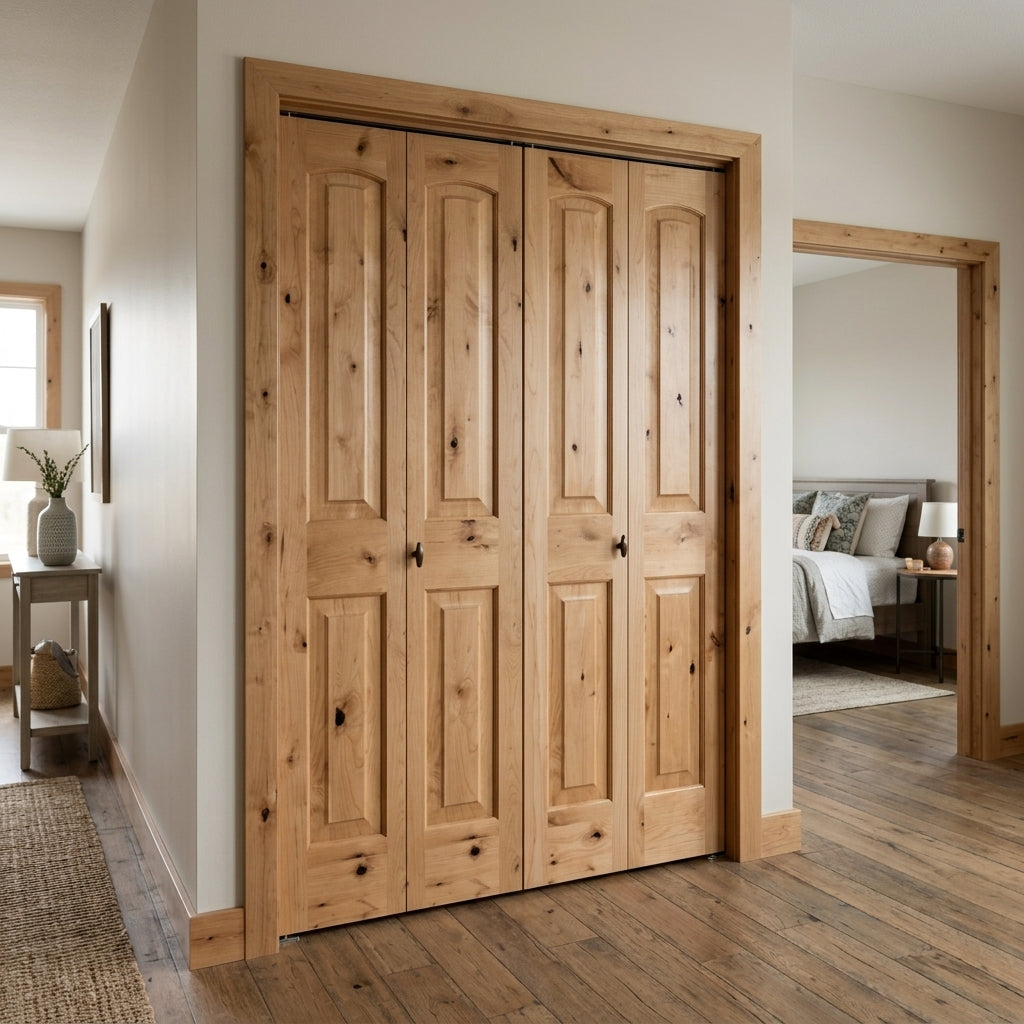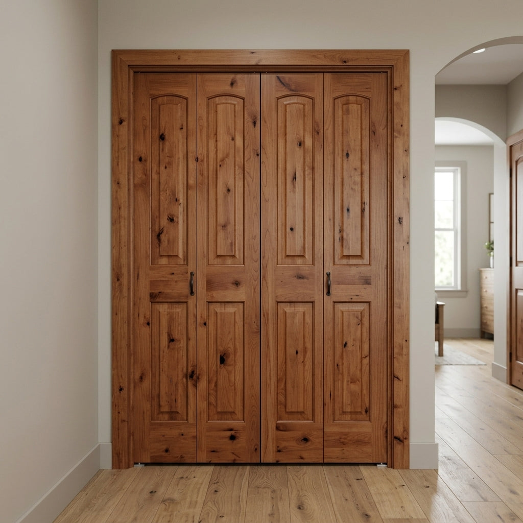 Farmhouse Knotty Alder Arch-Top Bifold Double Wood Door with Hardware