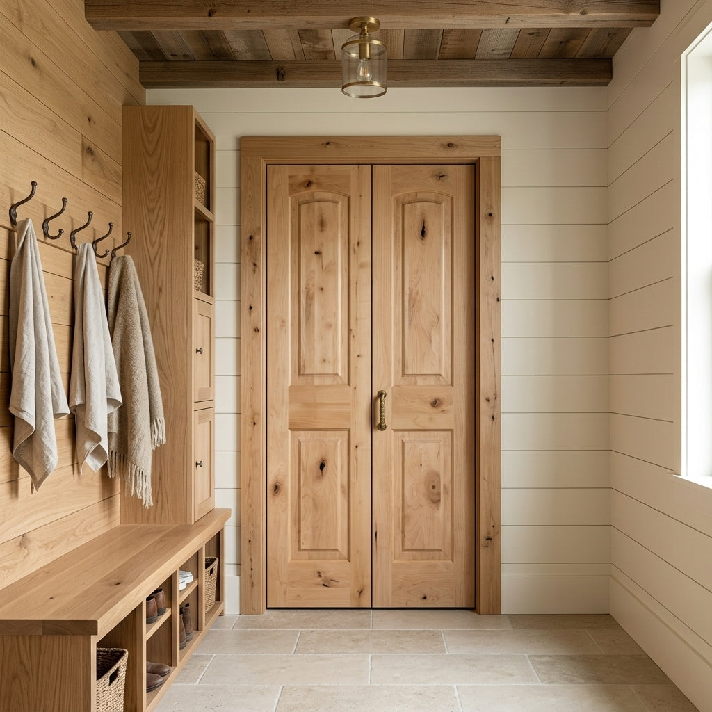 Farmhouse Knotty Alder Wood Arch Top Interior Double Door