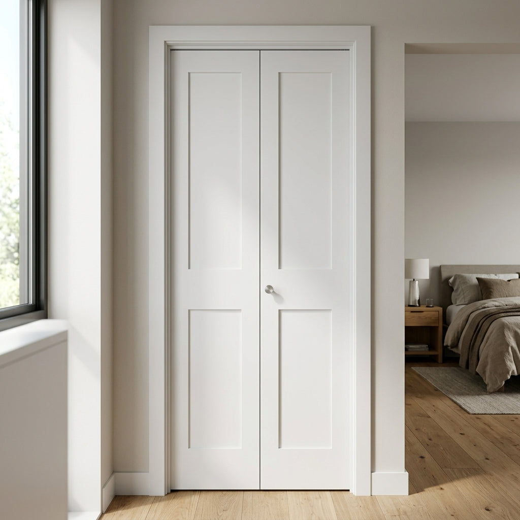 Shaker 2 Panel MDF Bifold Double Door with Hardware