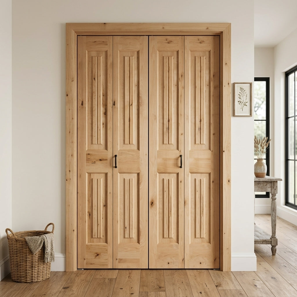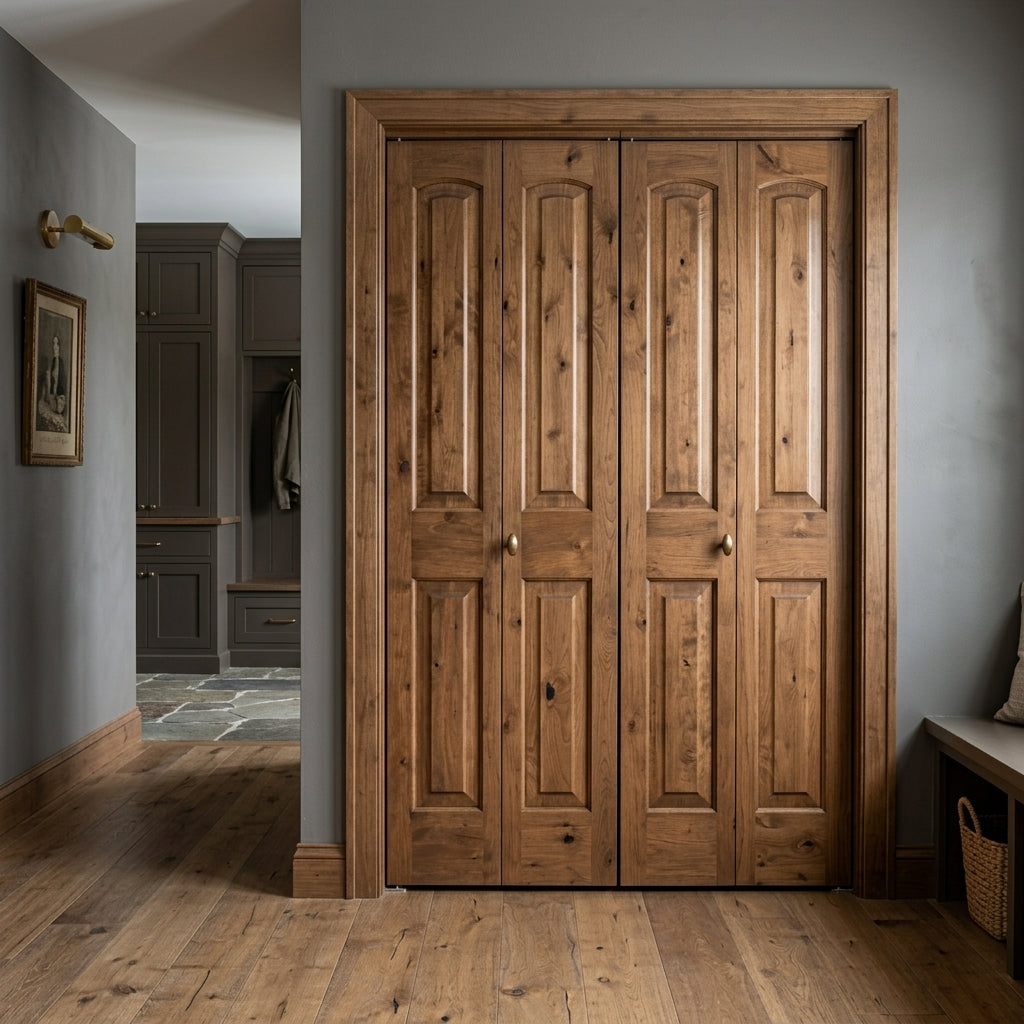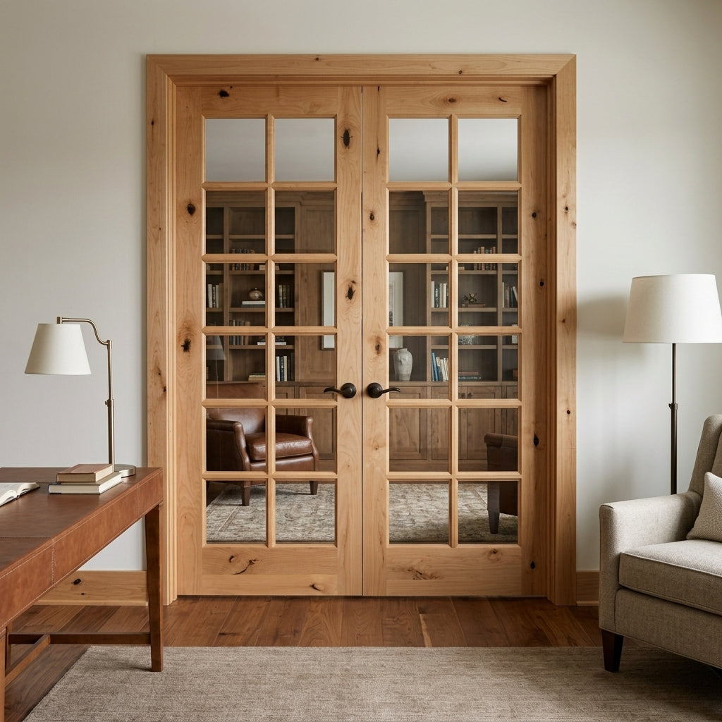 Nothing says character like the exposed wood grain and unique, textured knotting of a Knotty Alder Wood Interior Double Door from Krosswood Doors. Our Modern Farmhouse inspired doors feature superior craftsmanship and doweled construction to bring out the personality in any room. Find your perfect fit today with our custom size, layout, and stain options.