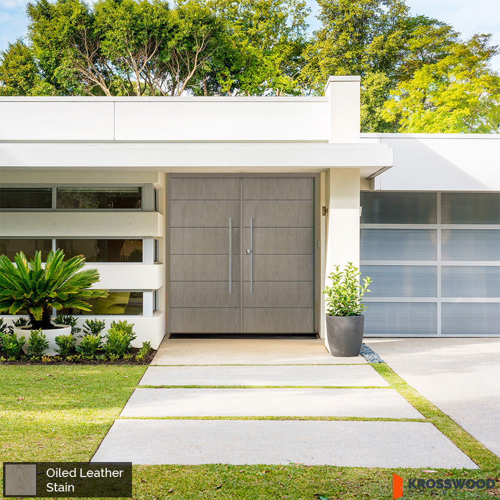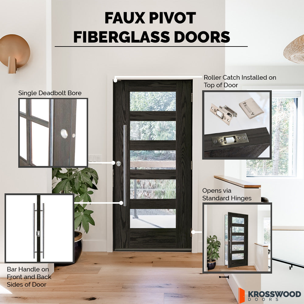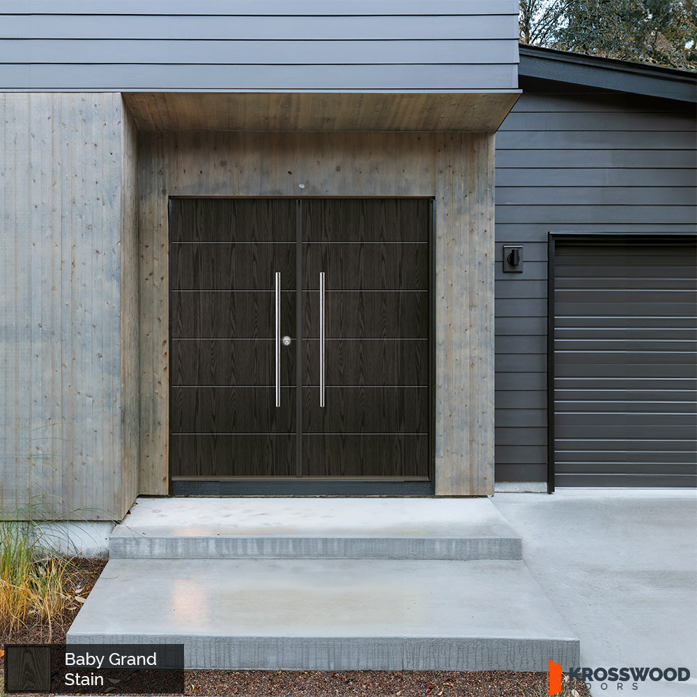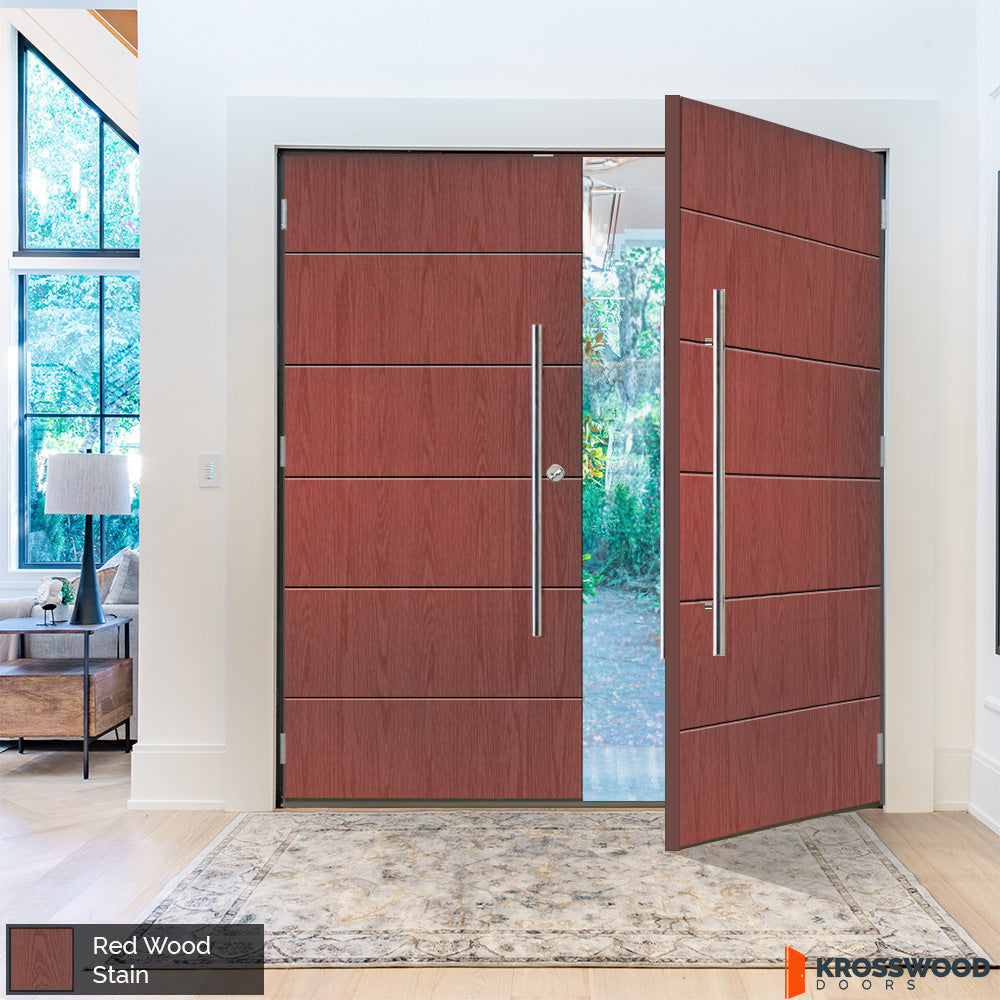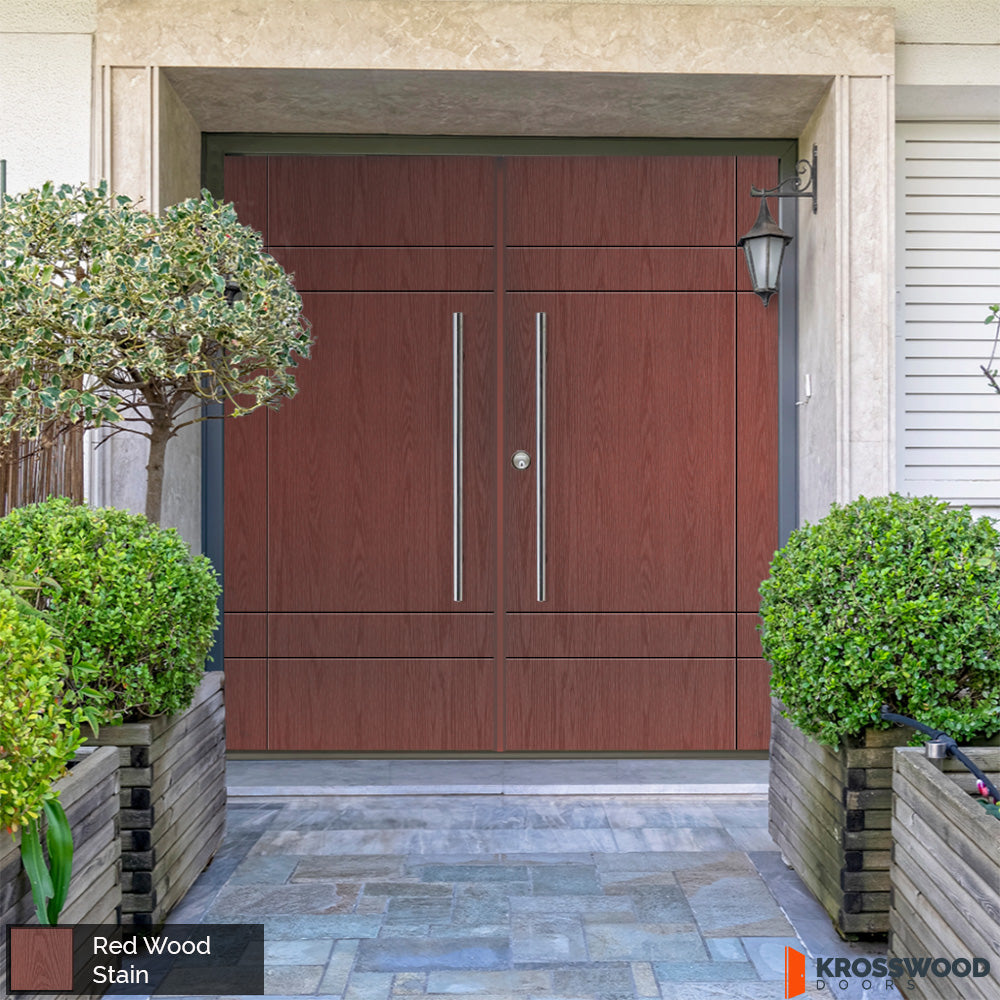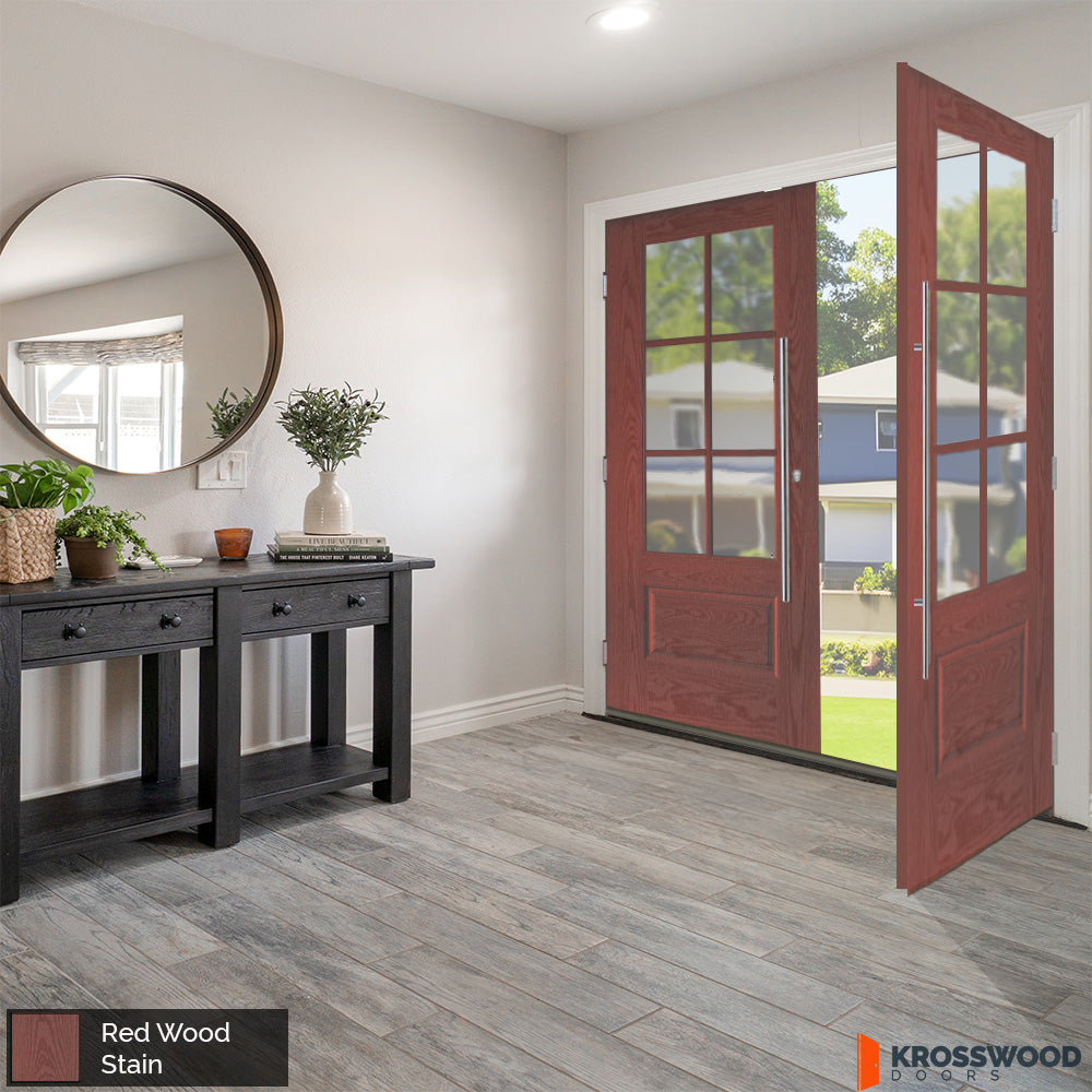 Our premium fiberglass Faux Pivot Pull Handle Double Doors look like real wood and arrive ready to install in your existing front door entryway. Durable enough for any climate yet beautiful enough to transform your entryway. Explore stainable and paintable options today. Opens on standard hinges.
