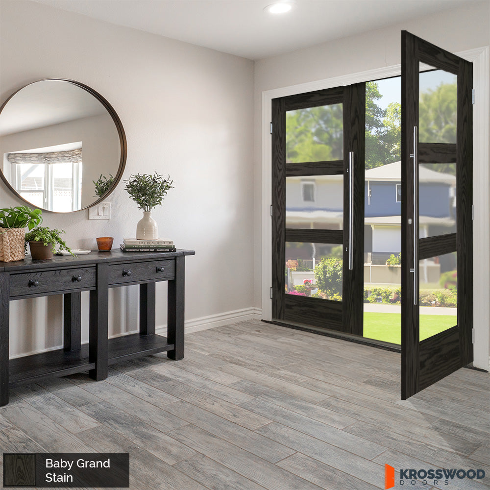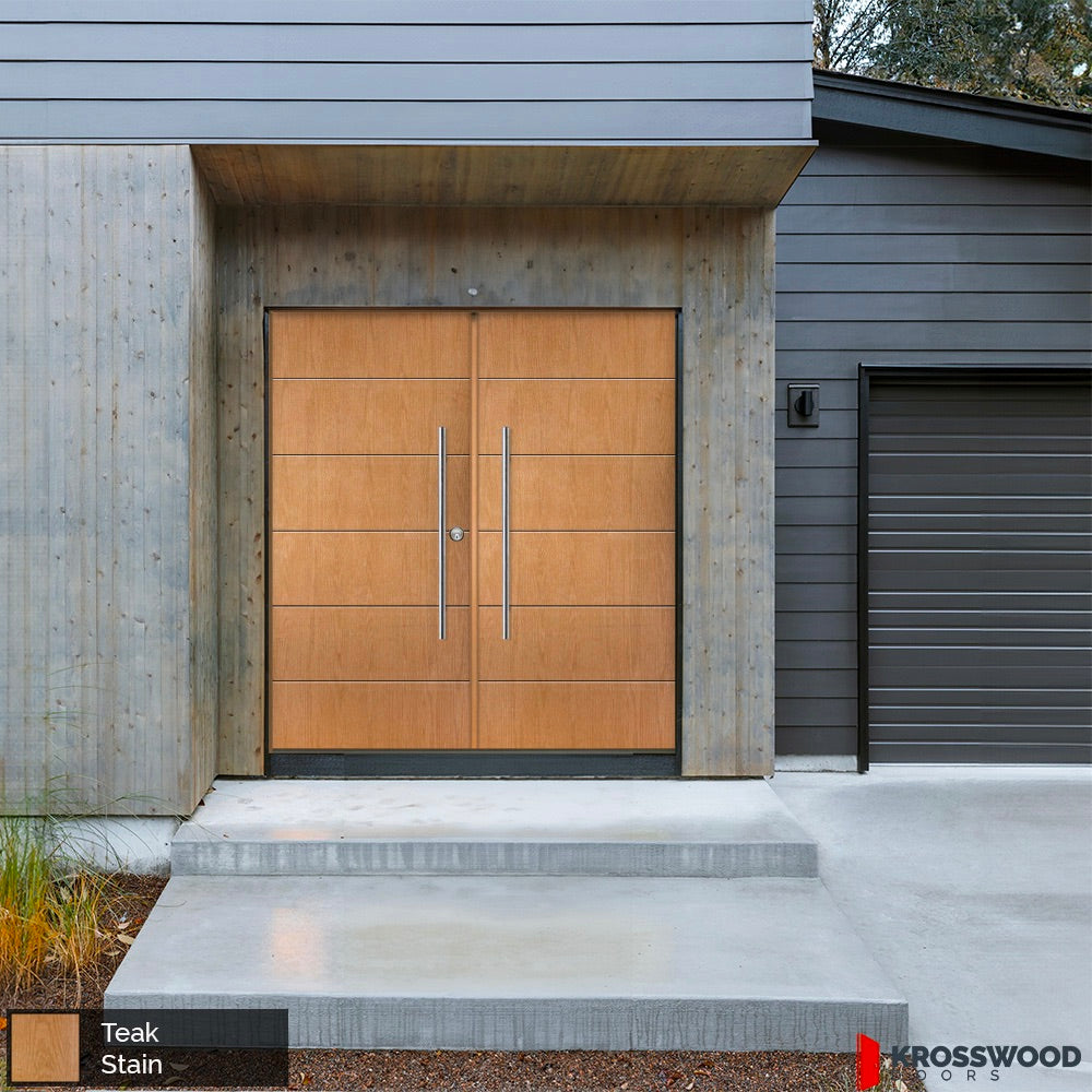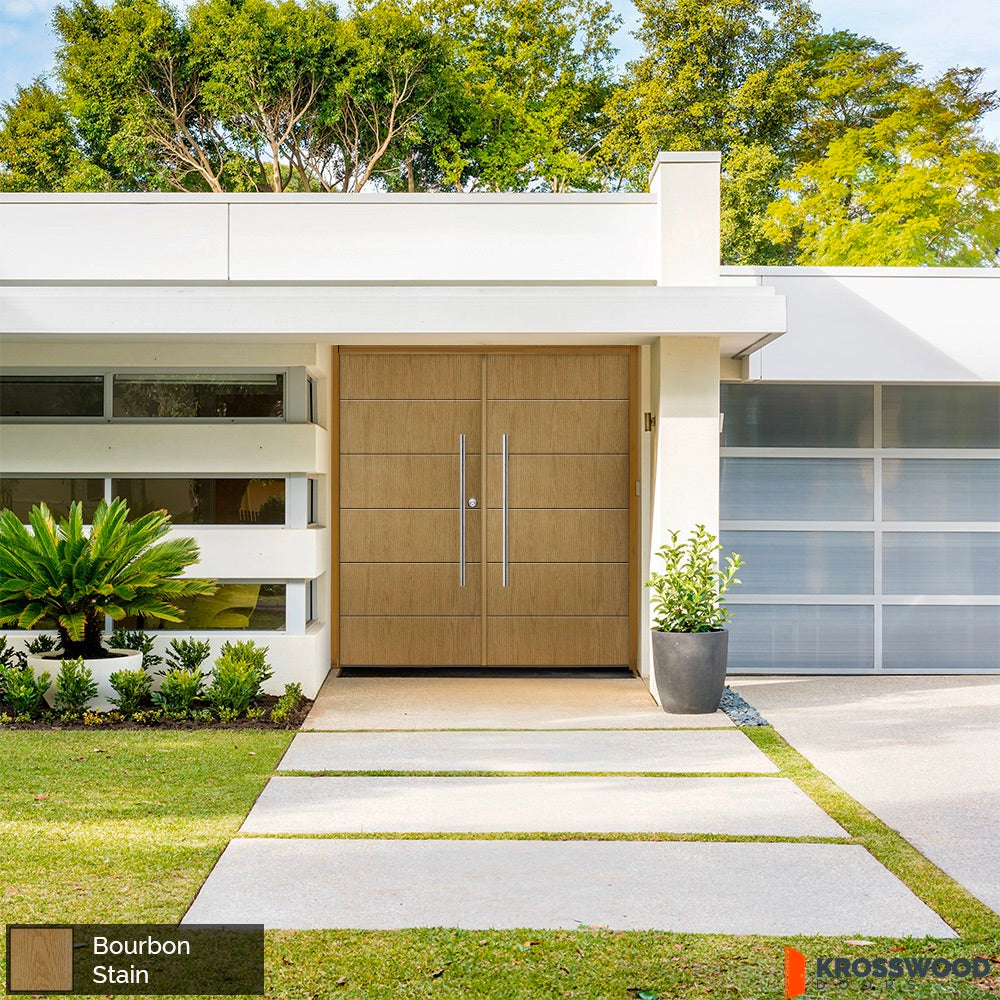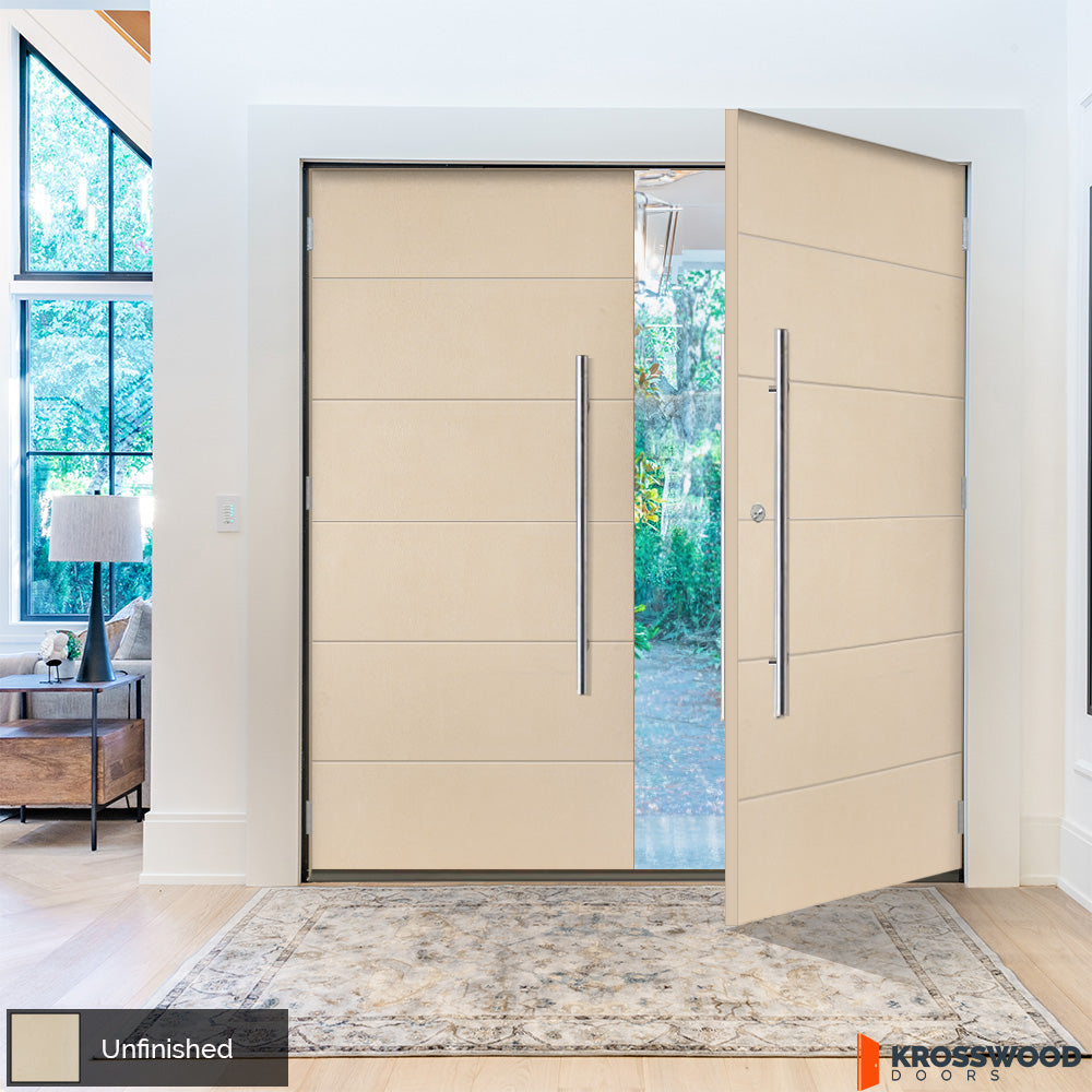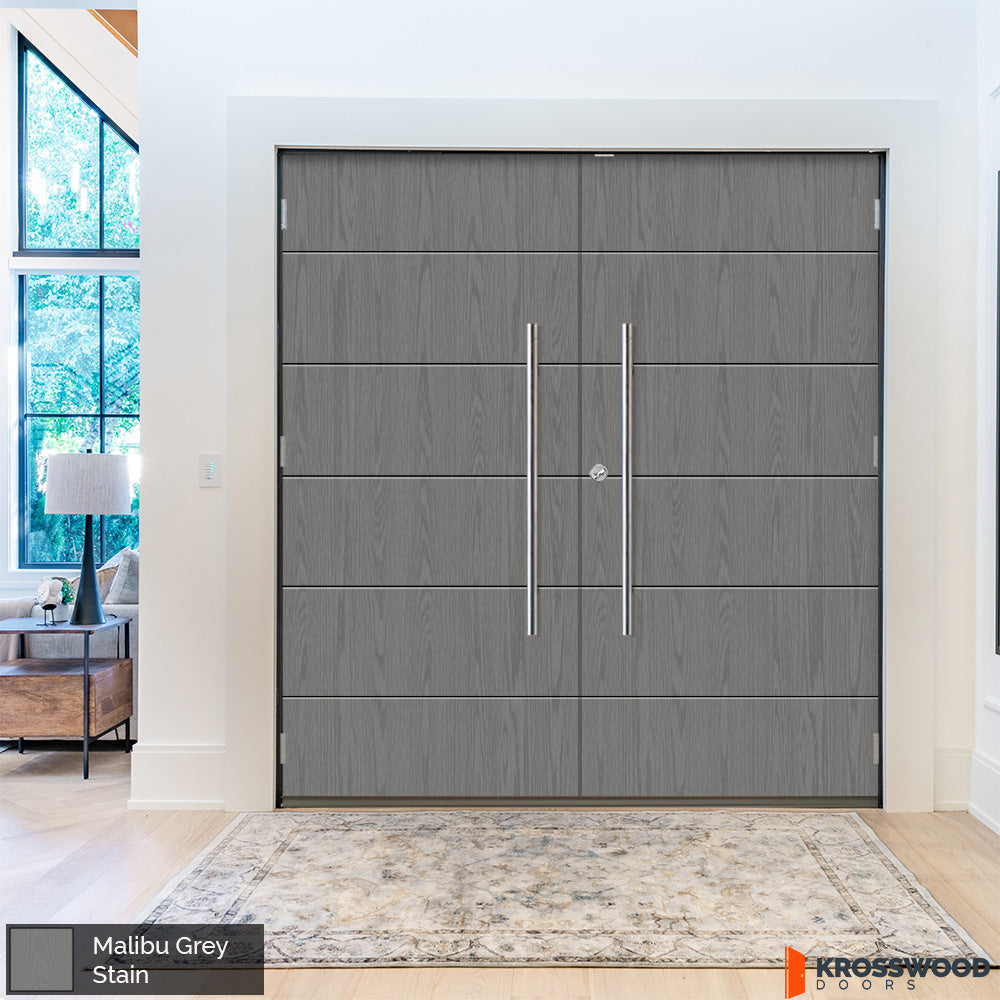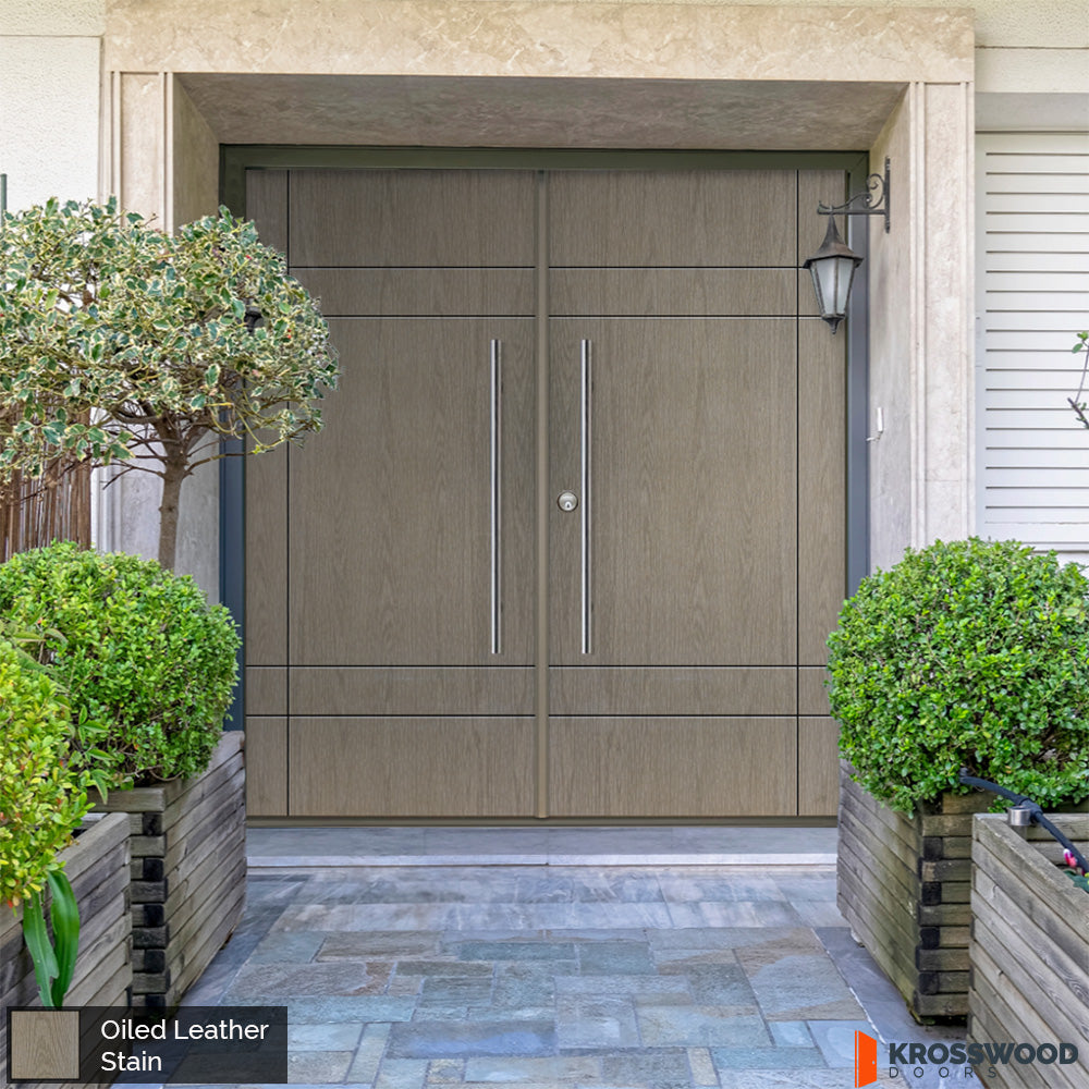 Our premium fiberglass Faux Pivot Pull Handle Double Doors look like real wood and arrive ready to install in your existing front door entryway. Durable enough for any climate yet beautiful enough to transform your entryway. Explore stainable and paintable options today. Opens on standard hinges.