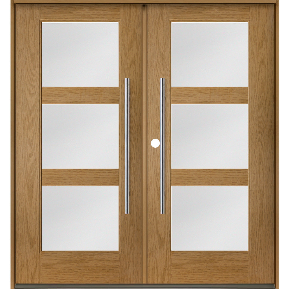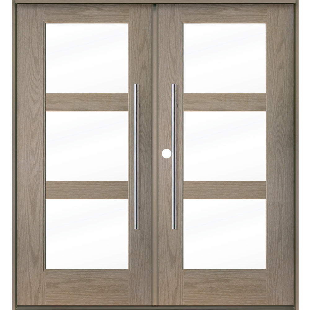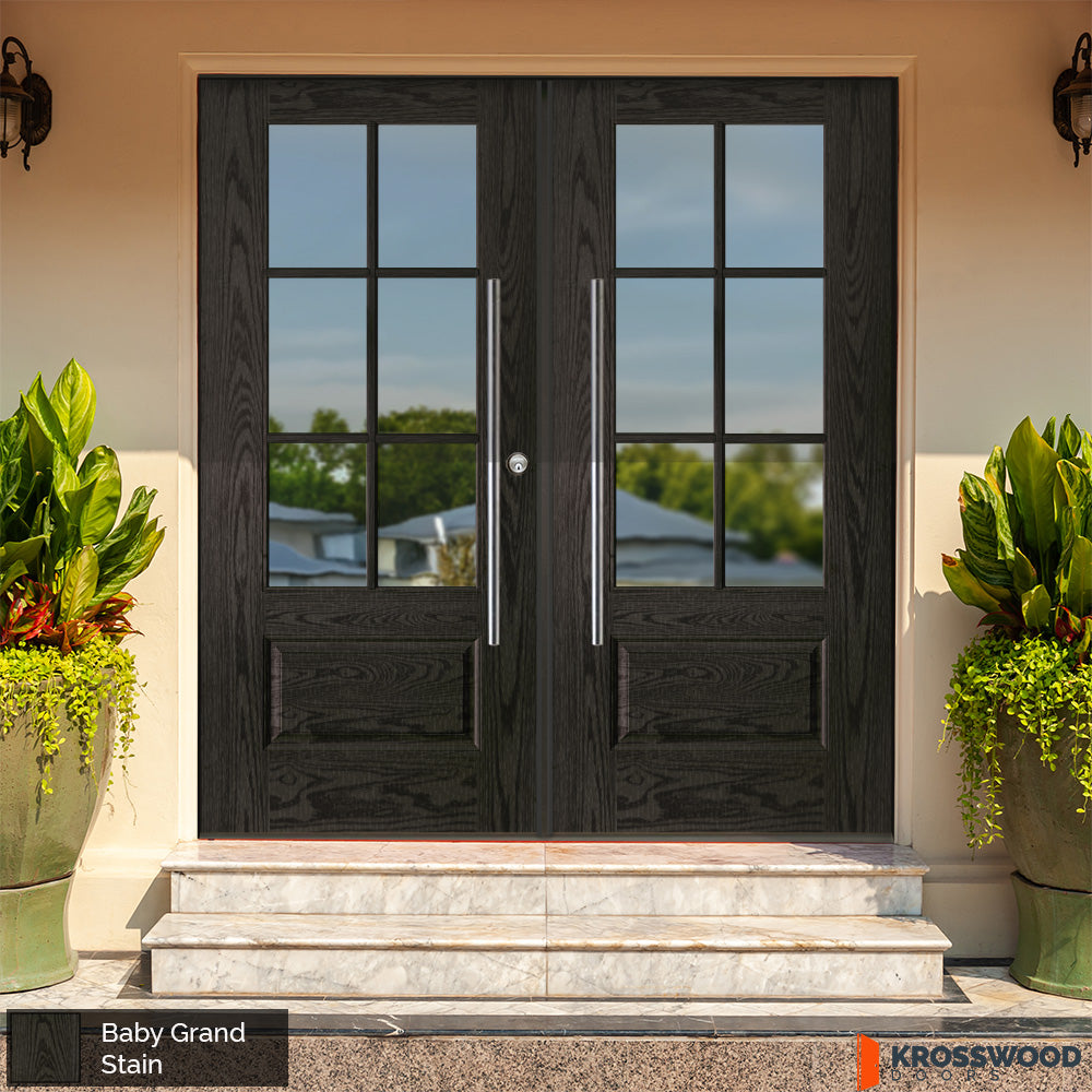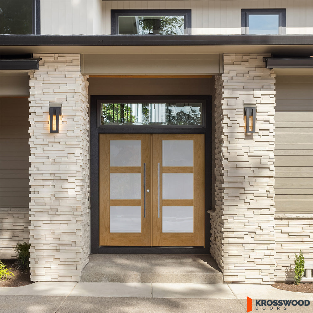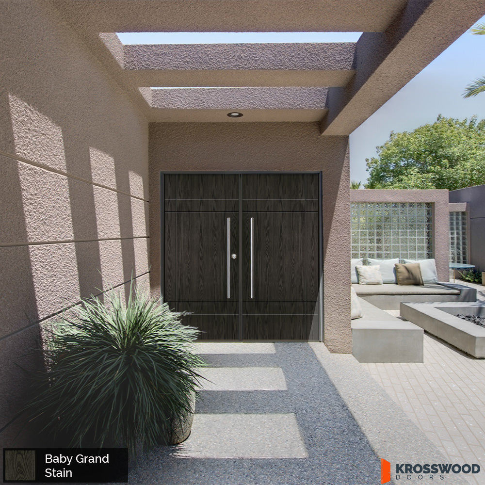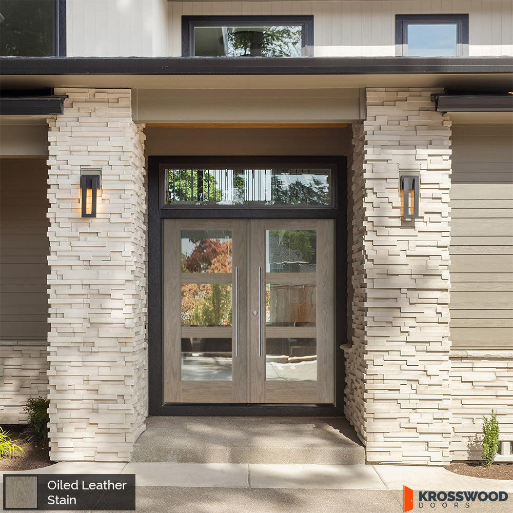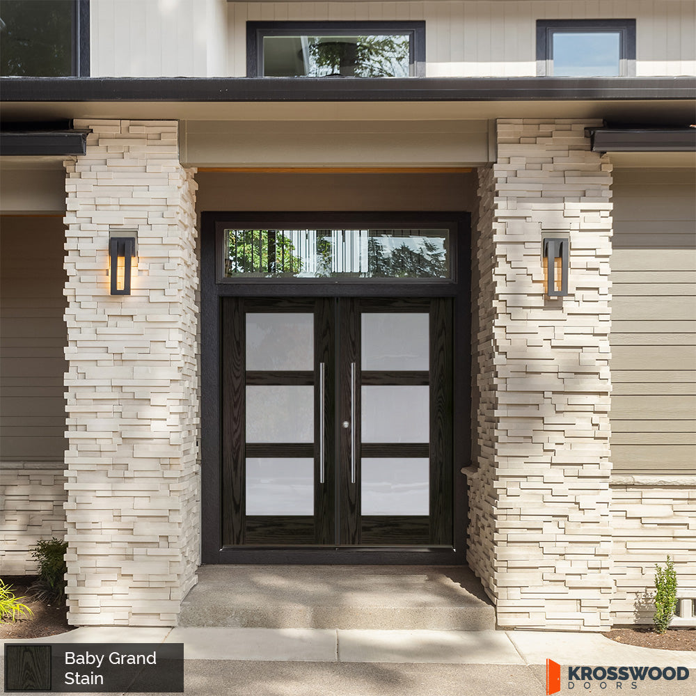 Our premium fiberglass Faux Pivot Pull Handle Double Doors look like real wood and arrive ready to install in your existing front door entryway. Durable enough for any climate yet beautiful enough to transform your entryway. Explore stainable and paintable options today. Opens on standard hinges.