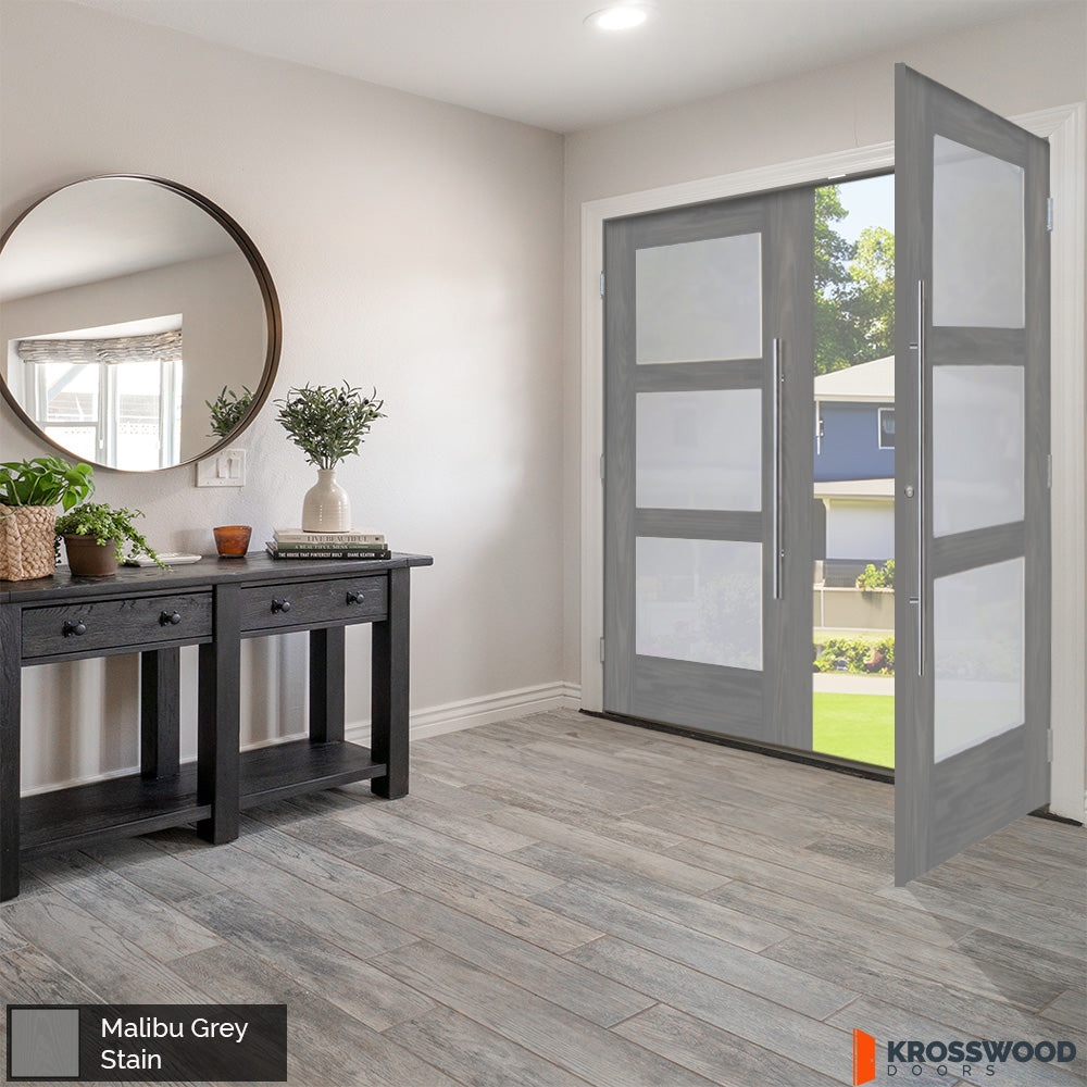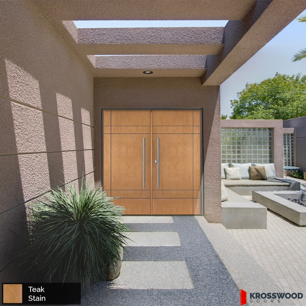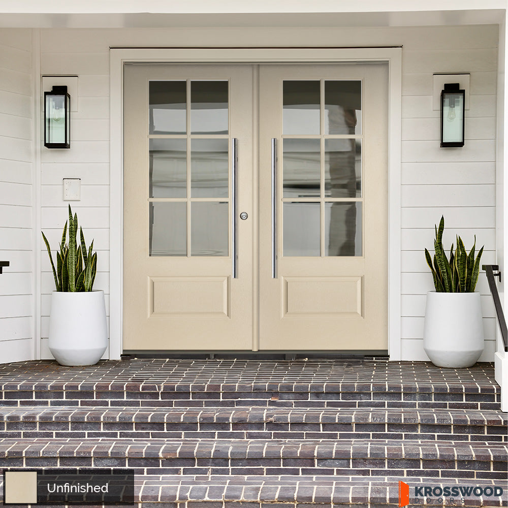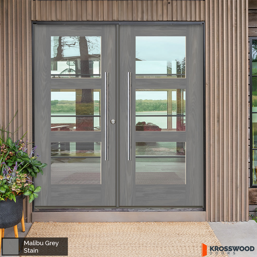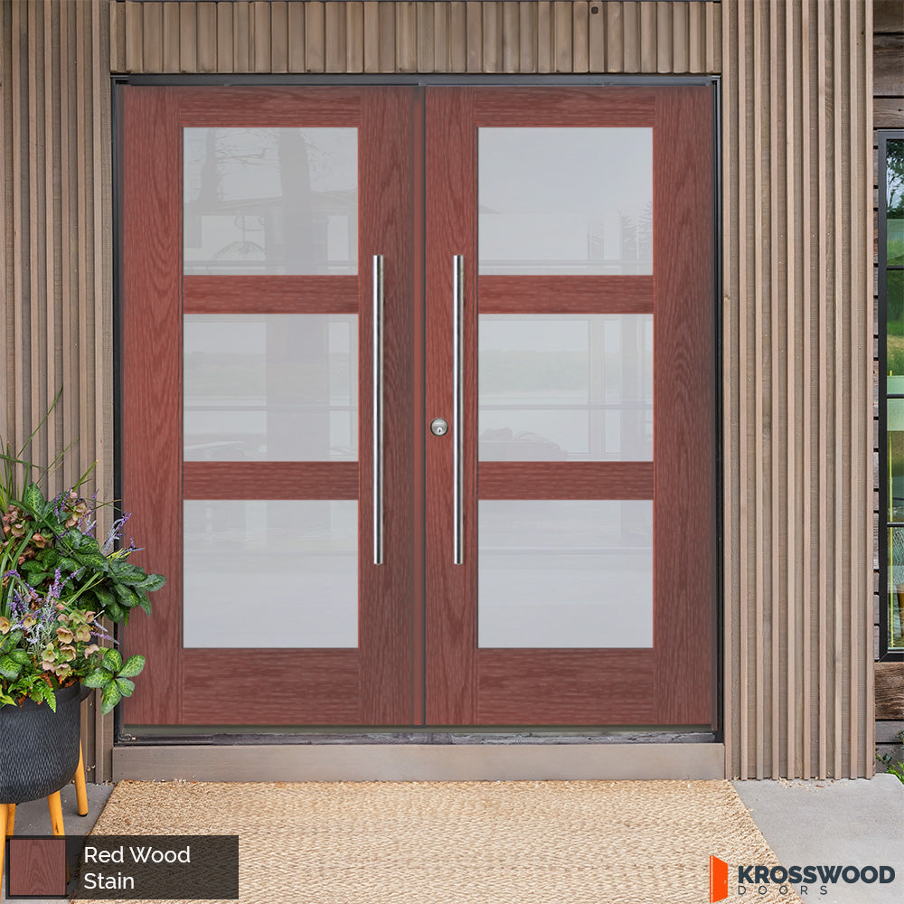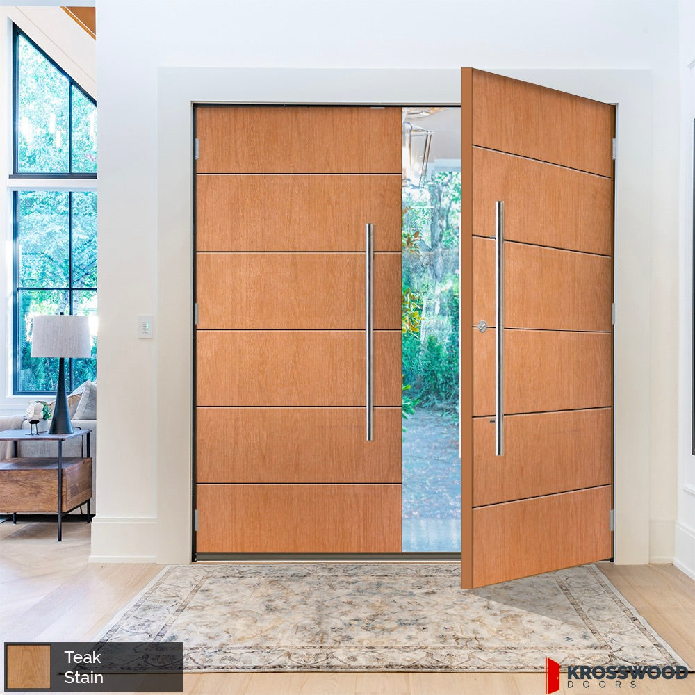 Our premium fiberglass Faux Pivot Pull Handle Double Doors look like real wood and arrive ready to install in your existing front door entryway. Durable enough for any climate yet beautiful enough to transform your entryway. Explore stainable and paintable options today. Opens on standard hinges.
