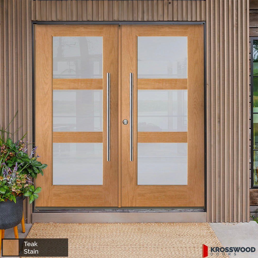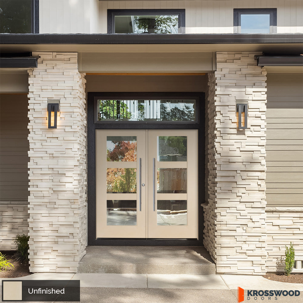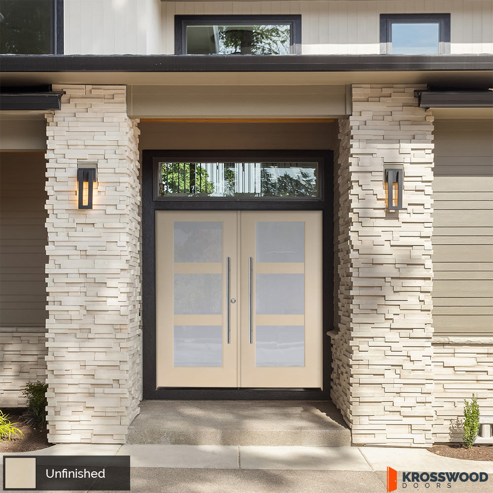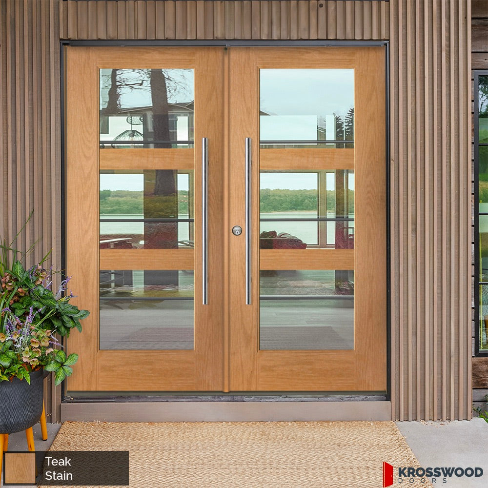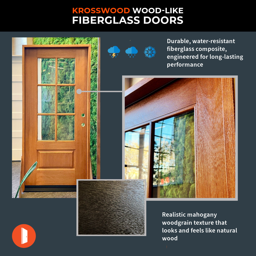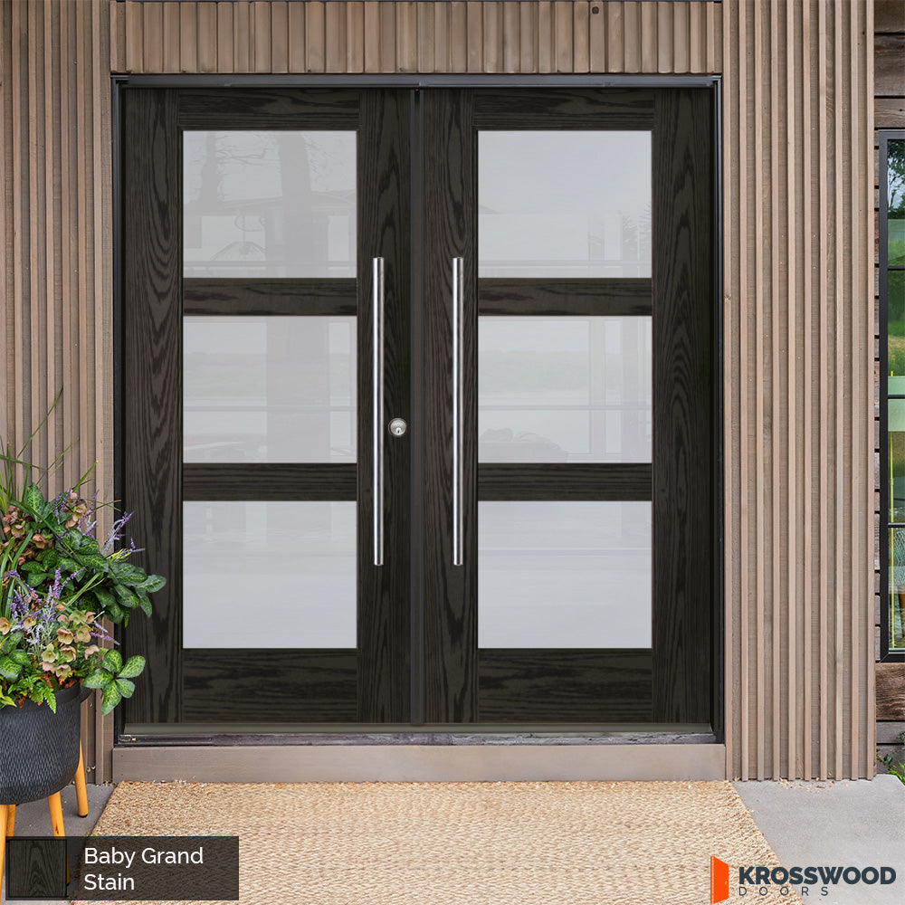 Our premium fiberglass Faux Pivot Pull Handle Double Doors look like real wood and arrive ready to install in your existing front door entryway. Durable enough for any climate yet beautiful enough to transform your entryway. Explore stainable and paintable options today. Opens on standard hinges.