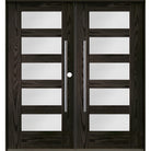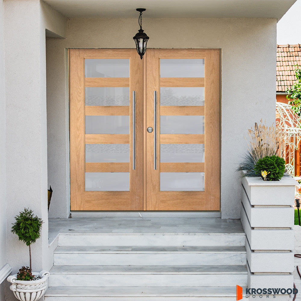 La porte d'entrée pré-suspendue en fibre de verre à 5 carreaux ASCEND Modern Faux Pivot de Krosswood Doors est une pièce unique qui amènera votre maison à l'avant-garde du design contemporain. Cette porte frappante présente une texture en fibre de verre à grain d'acajou teintable qui ressemble à du vrai bois et cinq fenêtres en verre transparent pour laisser entrer beaucoup de lumière naturelle. Contrairement aux portes pivotantes traditionnelles qui nécessitent des modifications coûteuses pour agrandir votre entrée, les fausses portes pivotantes de Krosswood sont accrochées sur des charnières standard et fonctionnent avec une conception simple push-pull qui comprend des poignées à barre de traction, un loquet à rouleau installé en haut et un trou de pêne dormant unique pour sécurité. Personnalisez votre entrée en choisissant parmi l'une de nos teintures vibrantes, ou commandez votre porte en bois brute, prête à peindre ou à teindre selon votre préférence de couleur.