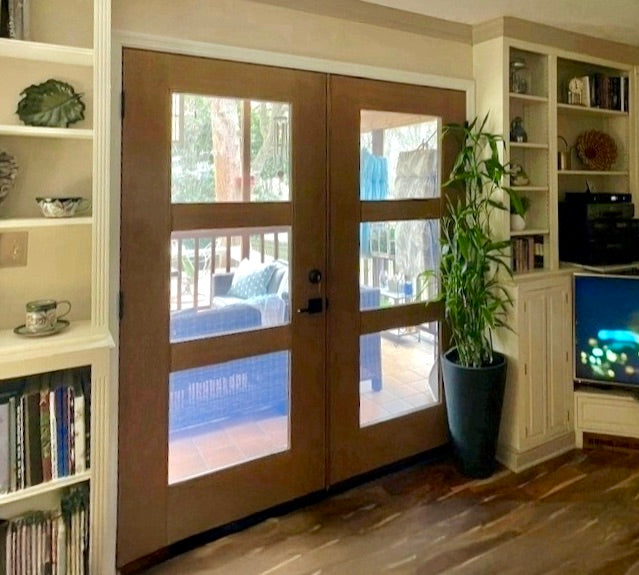 Les portes teintées sont disponibles dans votre choix de teinture pour bois à base d'huile semi-transparente ZAR et d'une couche de finition transparente en uréthane Helmsman Spar.