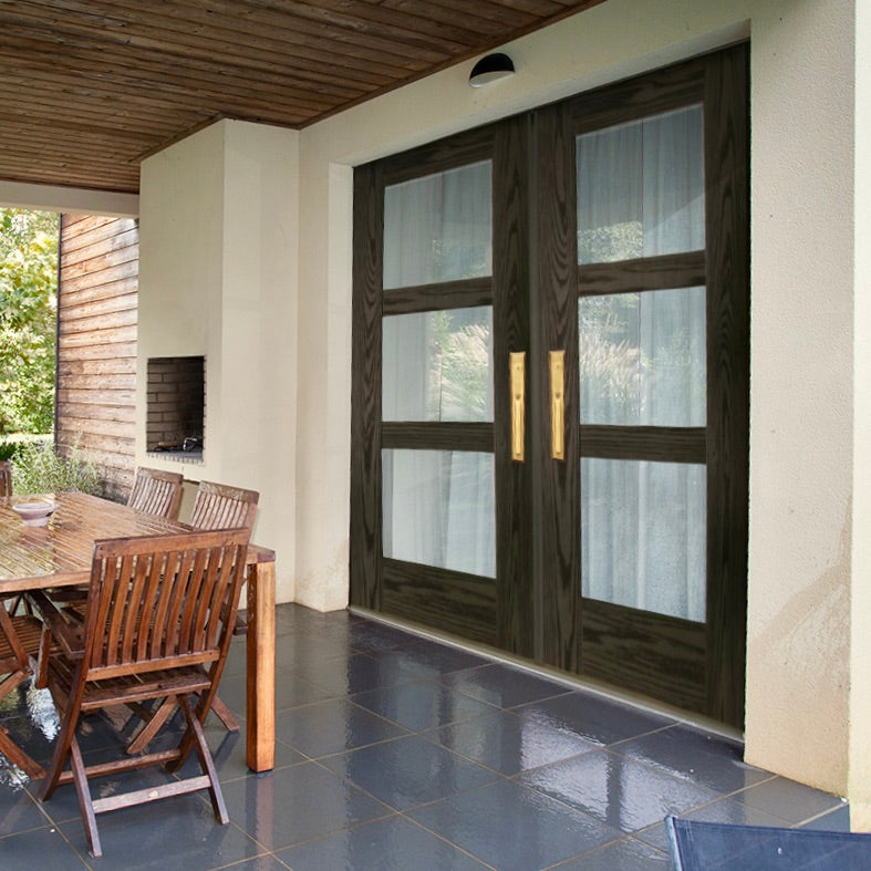 Porte double moderne en fibre de verre à 3 carreaux en verre transparent BRIGHTON