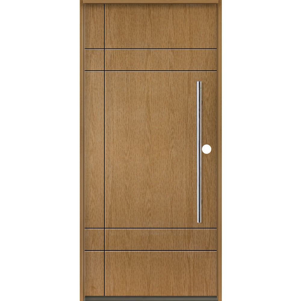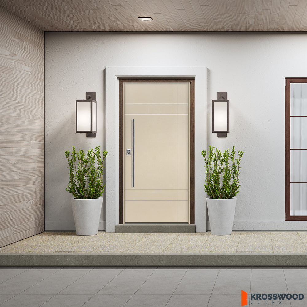 Démarquez-vous dans une foule de maisons à l'emporte-pièce avec la porte d'entrée moderne à faux pivot pré-suspendue en fibre de verre SUMMIT de Krosswood Doors. Cette porte rainurée en fibre de verre présente une surface texturée en acajou qui ressemble à du vrai bois tout en étant résistante à la pourriture et aux intempéries. Il n'est pas nécessaire d'agrandir votre entrée comme vous le feriez avec une porte pivotante traditionnelle : cette porte moderne comprend des poignées de barre de traction avant et arrière, un loquet à rouleau et un trou de verrouillage unique, donnant à votre maison l'apparence et la facilité d'une porte pivotante tout en restant ouverture sur charnières standards. Personnalisez dès aujourd’hui votre fausse porte pivotante parfaite grâce à notre magnifique sélection de teintures – appliquées de manière experte aux États-Unis – ou commandez votre porte brute, prête à peindre ou à teindre selon votre préférence de couleur.