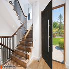 Porte d'entrée moderne en fibre de verre à faux pivot SUMMIT