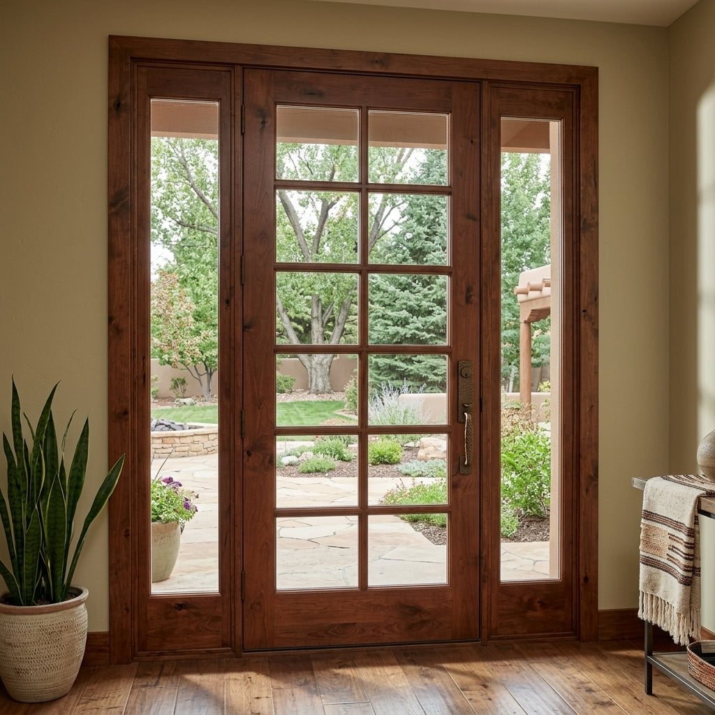 Porte extérieure en verre transparent French Knotty Alder 12 Lite