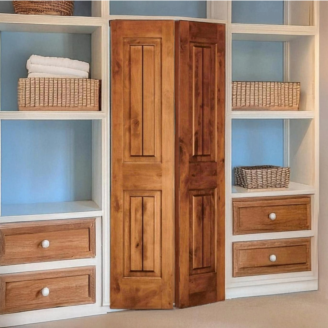 Porte intérieure pliante carrée à rainure en V en aulne noueux rustique