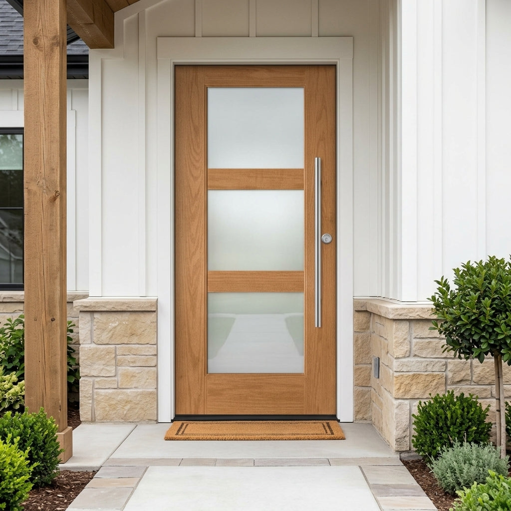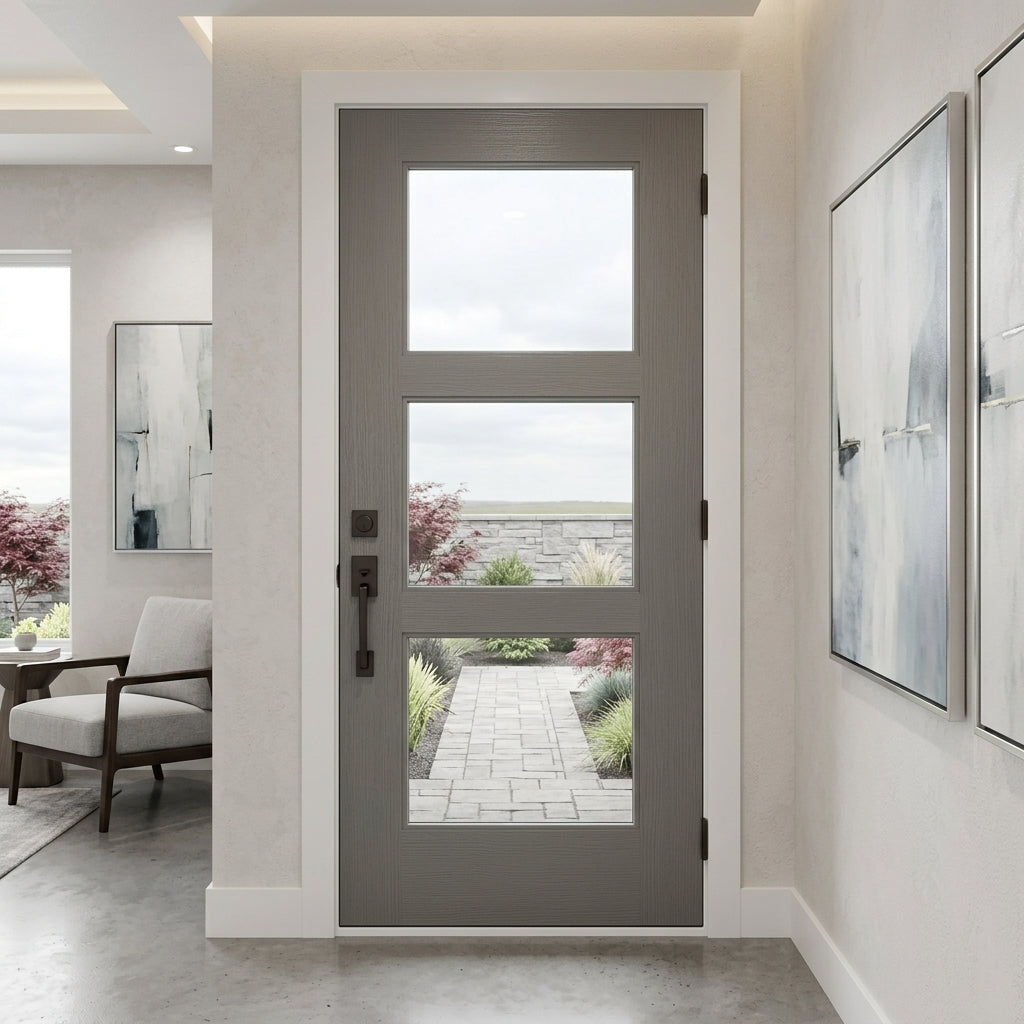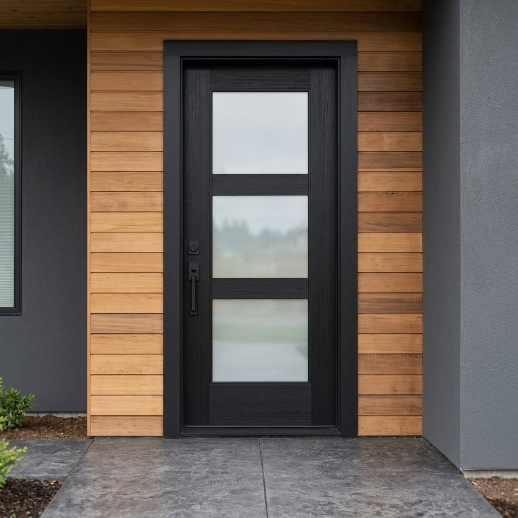 Porte extérieure moderne en fibre de verre à 3 carreaux BRIGHTON en verre satiné
