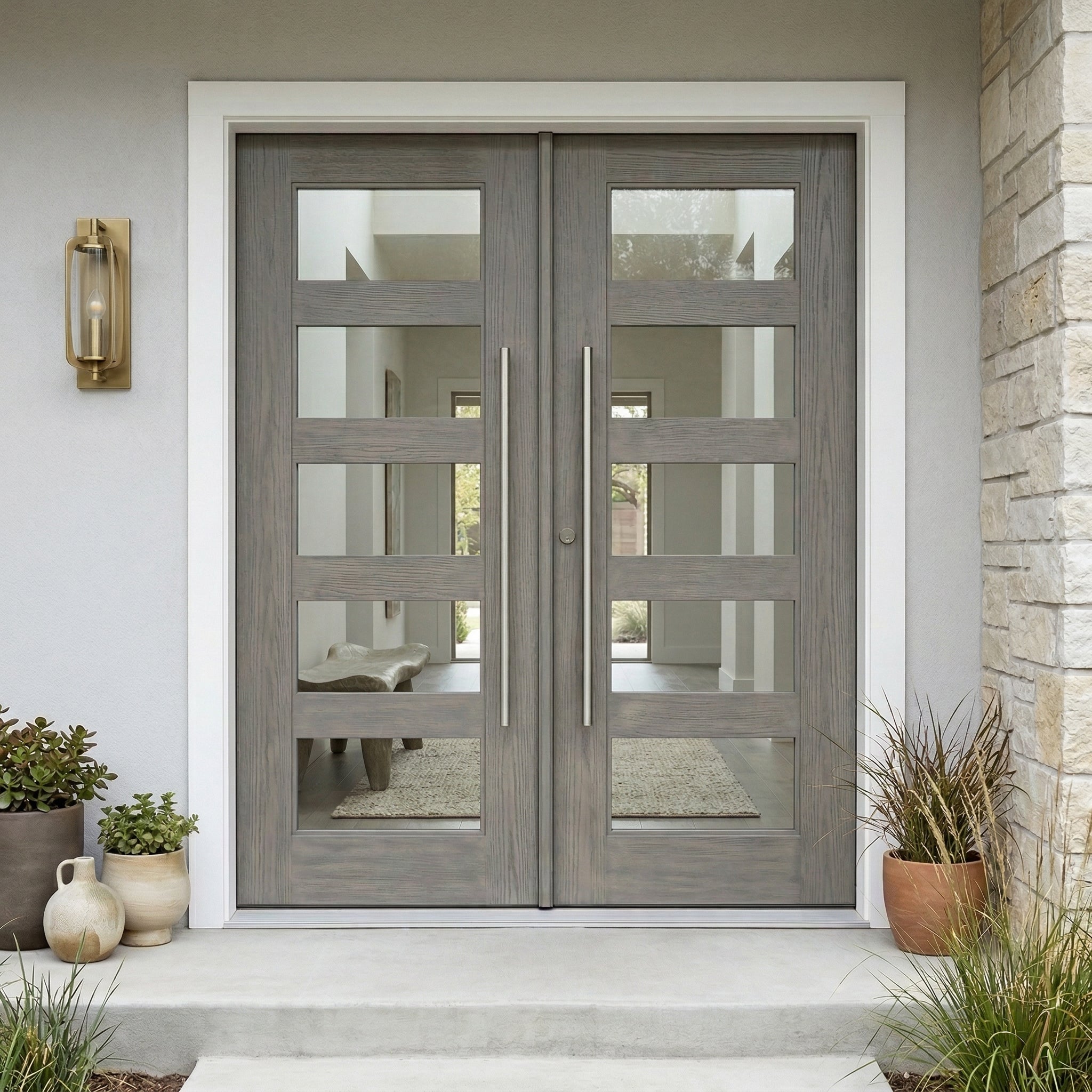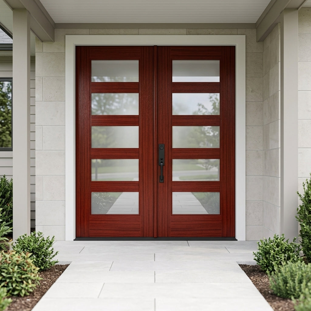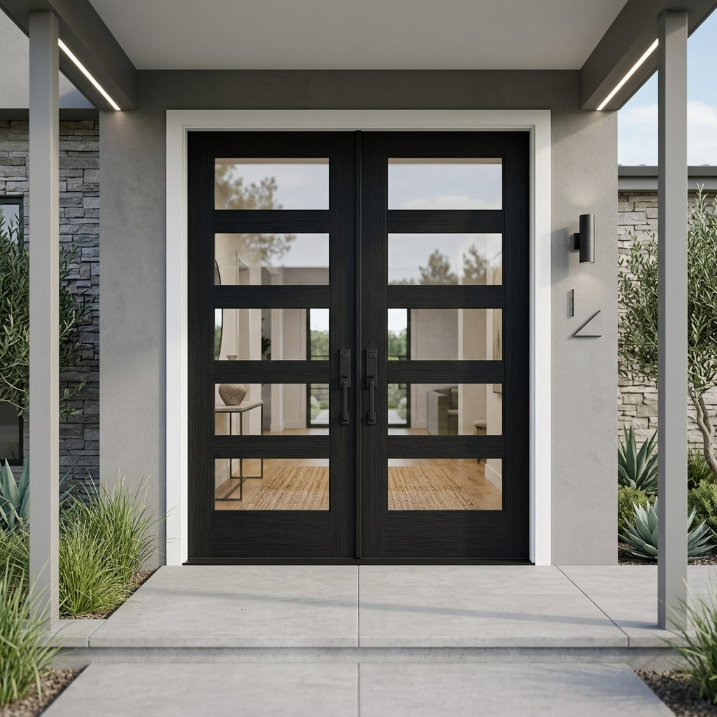 Porte double moderne en fibre de verre 5 carreaux en verre transparent ASCEND