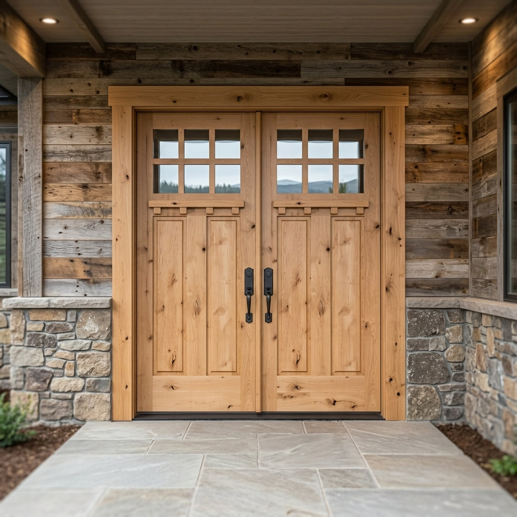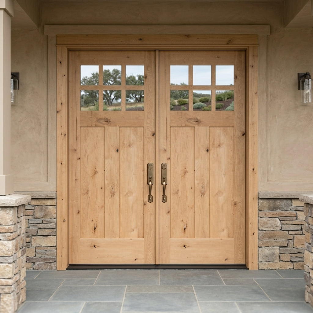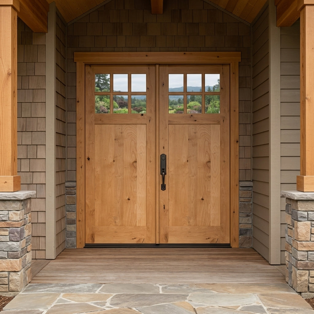 Porte double extérieure en verre à panneau simple Craftsman Knotty Alder 6 Lite