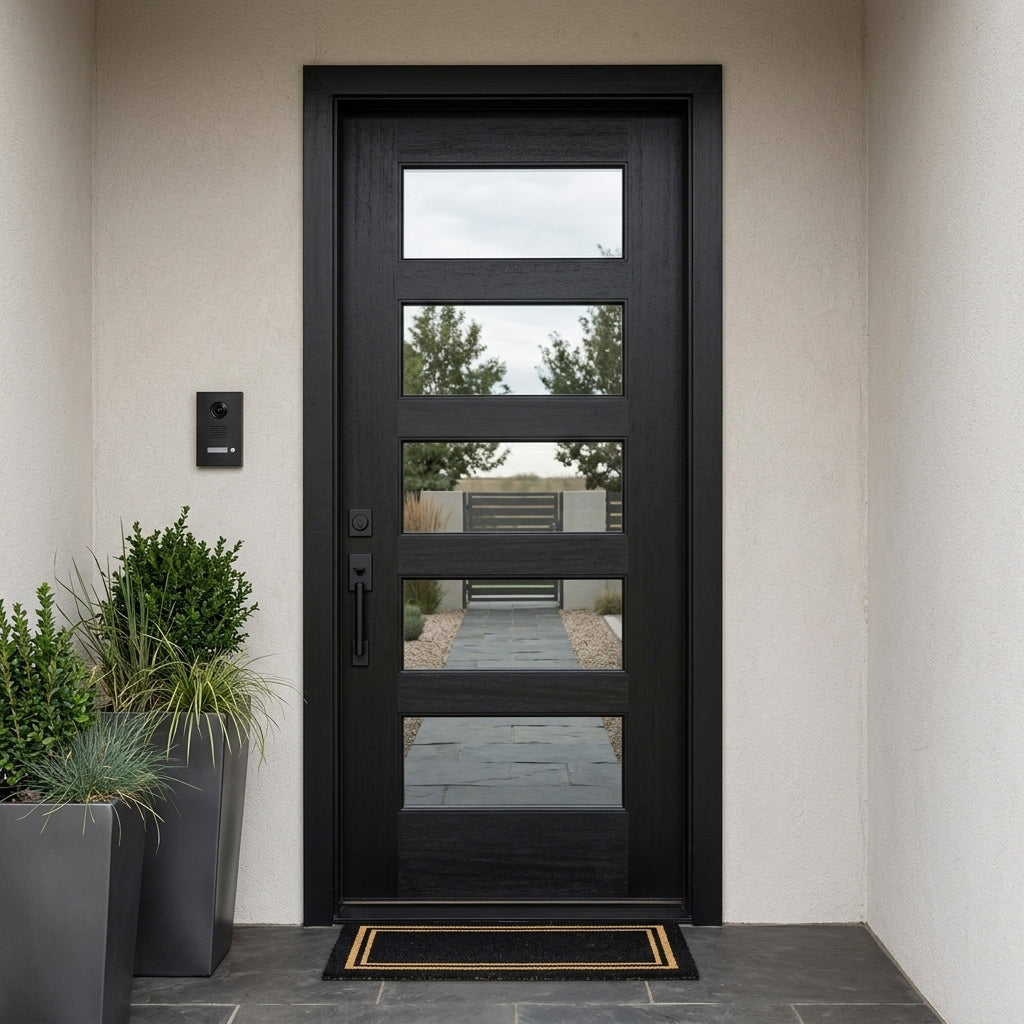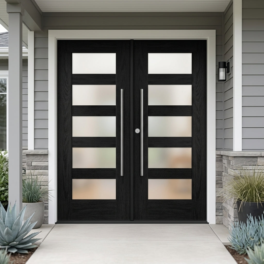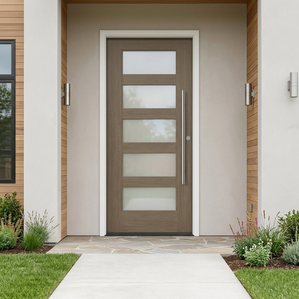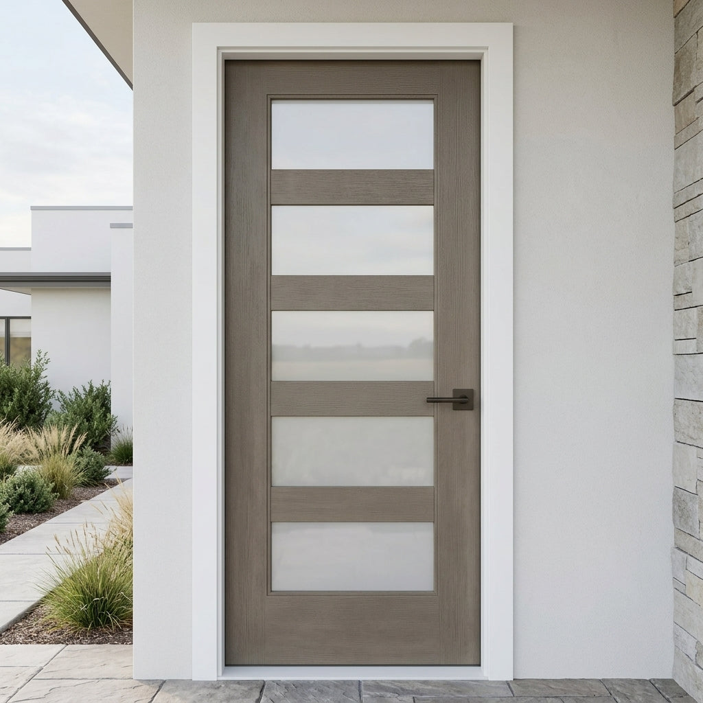 Porte extérieure moderne en fibre de verre ASCEND à 5 carreaux en verre satiné