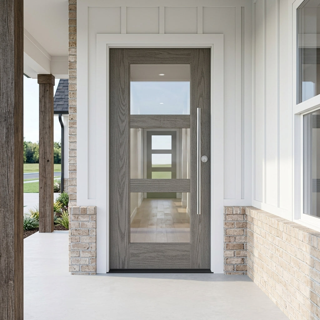 Porte extérieure moderne en fibre de verre à 3 carreaux en verre transparent BRIGHTON