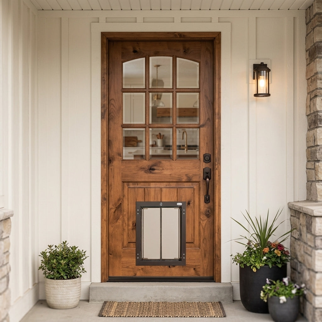 Porte extérieure en verre transparent avec porte pour chien Knotty Alder