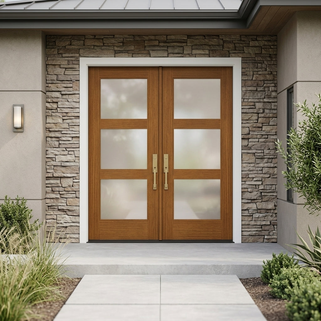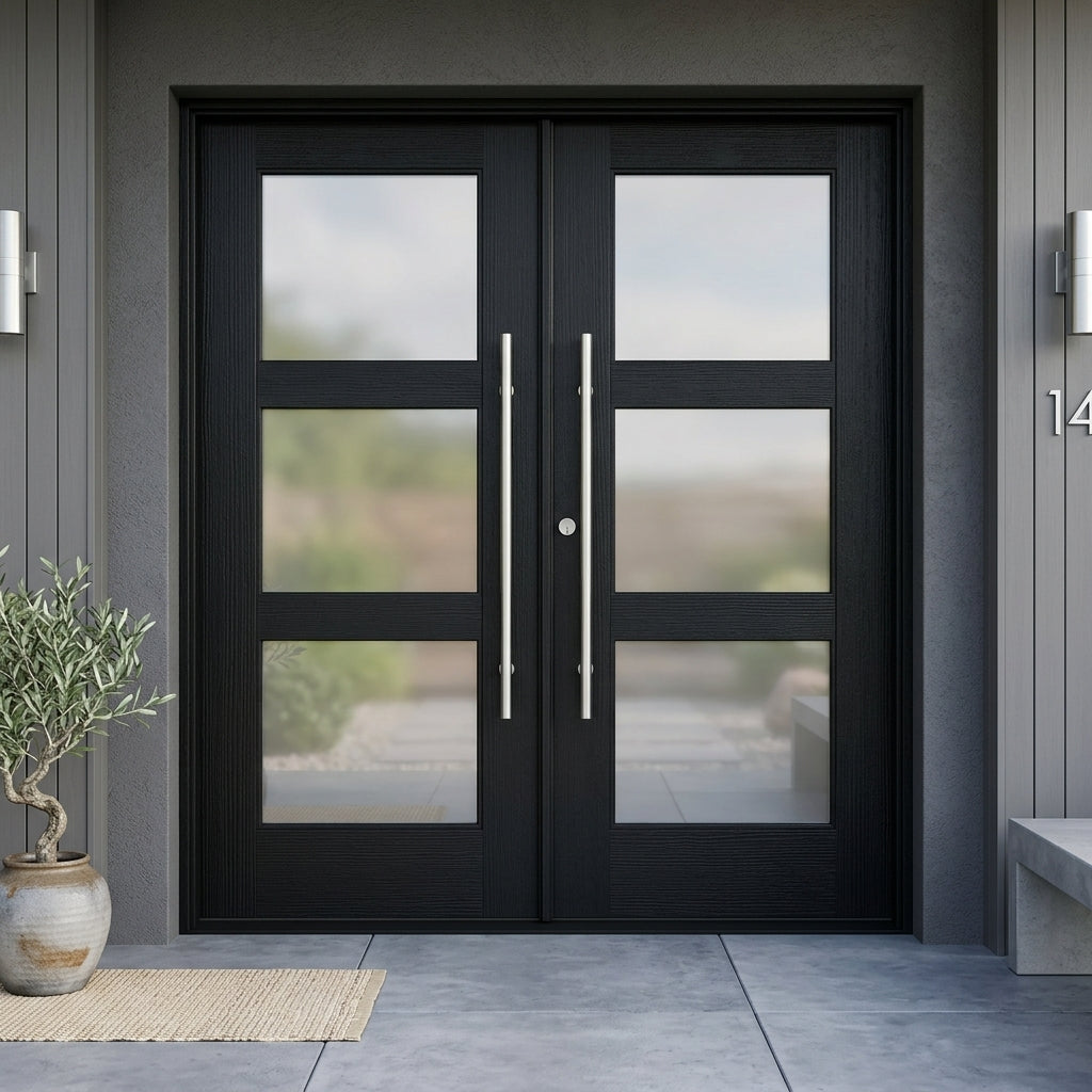 Porte double moderne en fibre de verre à 3 carreaux en verre satiné BRIGHTON