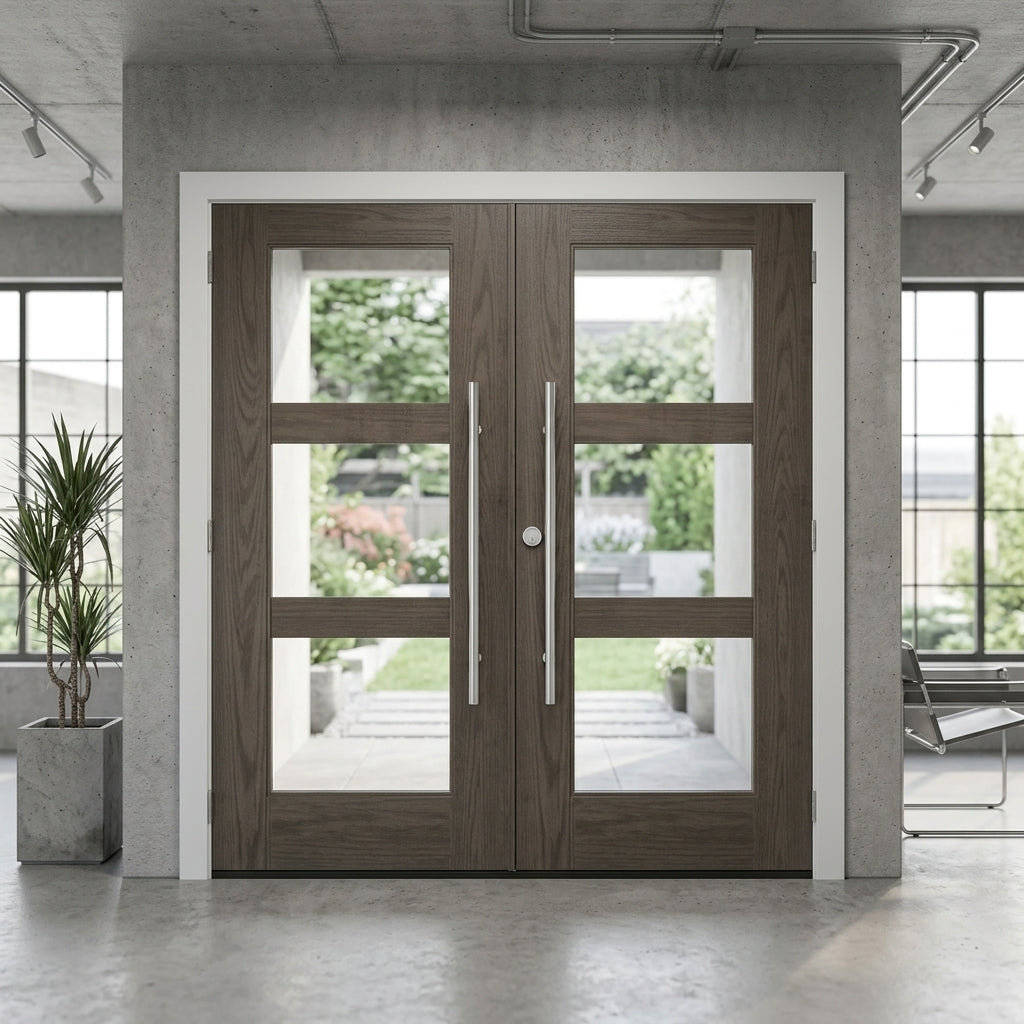 Porte double moderne en fibre de verre à 3 carreaux en verre transparent BRIGHTON
