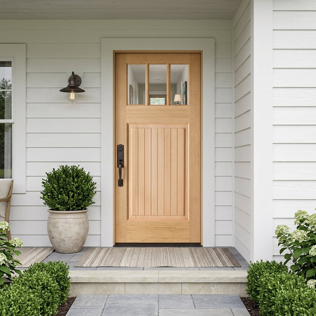 Porte extérieure à 3 panneaux en aulne noueux Craftsman