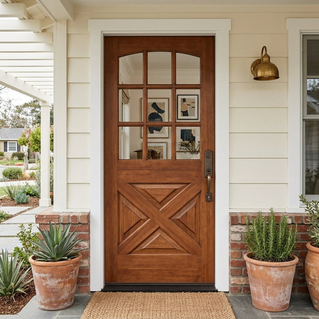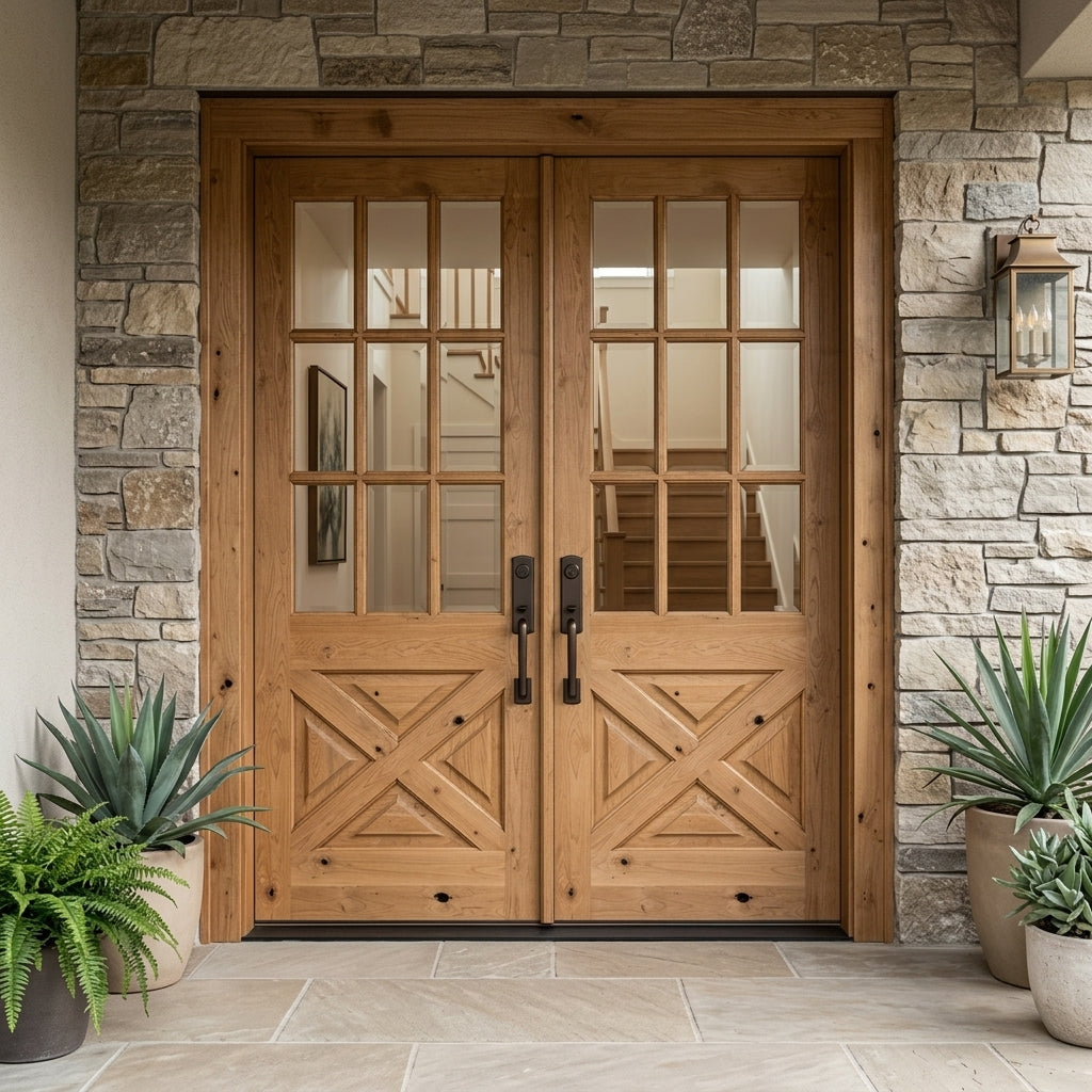 Porte double extérieure à panneau en X en verre Farmhouse 9 Lite