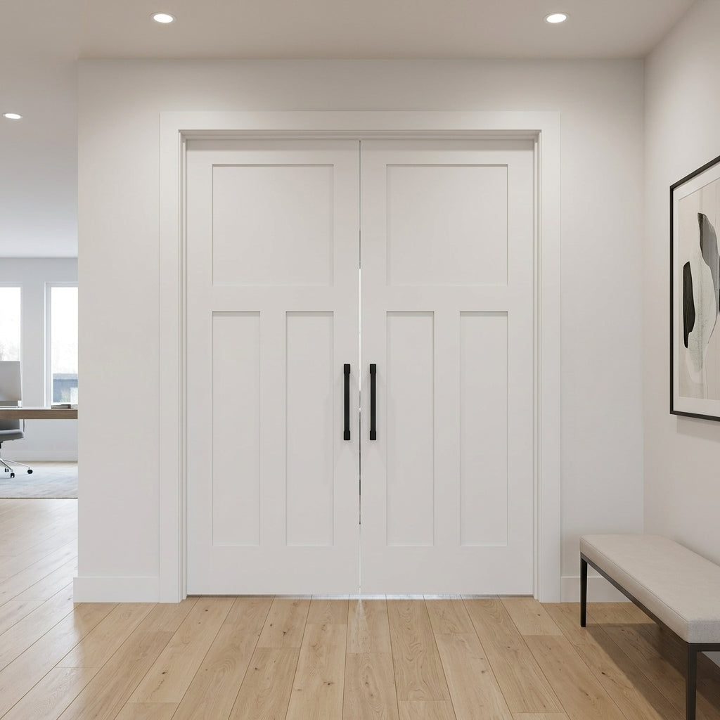 Porte intérieure double Shaker à 3 panneaux en MDF apprêté