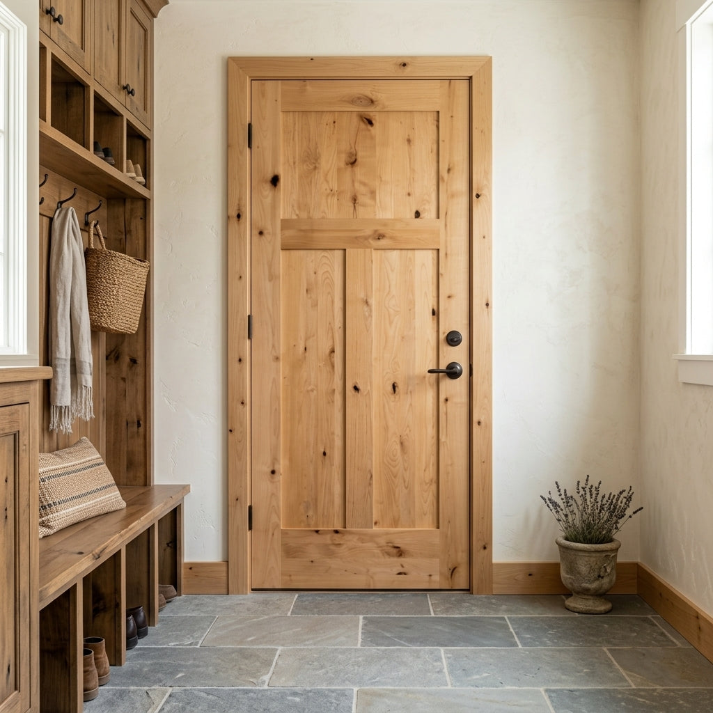Porte intérieure à 3 panneaux en aulne noueux Craftsman