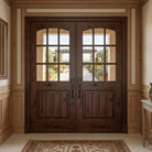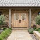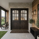 Create a bright and inviting atmosphere for your entryway with the Modern Farmhouse Knotty Alder 9 Lite Clear Glass V-Groove Front Double Door from Krosswood Doors. This arch top French-countryside inspired door features natural wood grain, unique knotting, and nine clear glass window panels to allow plenty of natural light into your home. Our wood doors are crafted with superior construction and hand finished to ensure that each one is a true work of art. Find your perfect fit today with our customizable sizes, layouts, and stains options.