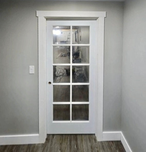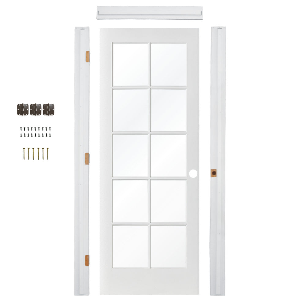 Combine function and elegance with the French 10 Lite Glass Window MDF Interior Door from Krosswood Doors. This timeless French style door features a sophisticated, utilitarian design that displays ten tempered clear glass window panels, durable engineering, and clean, minimalistic lines. The primed MDF surface arrives at your home smooth and ready to paint with little preparation time.