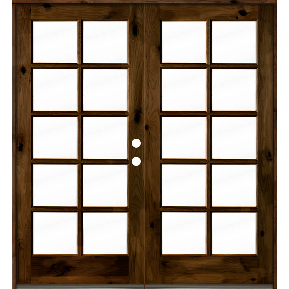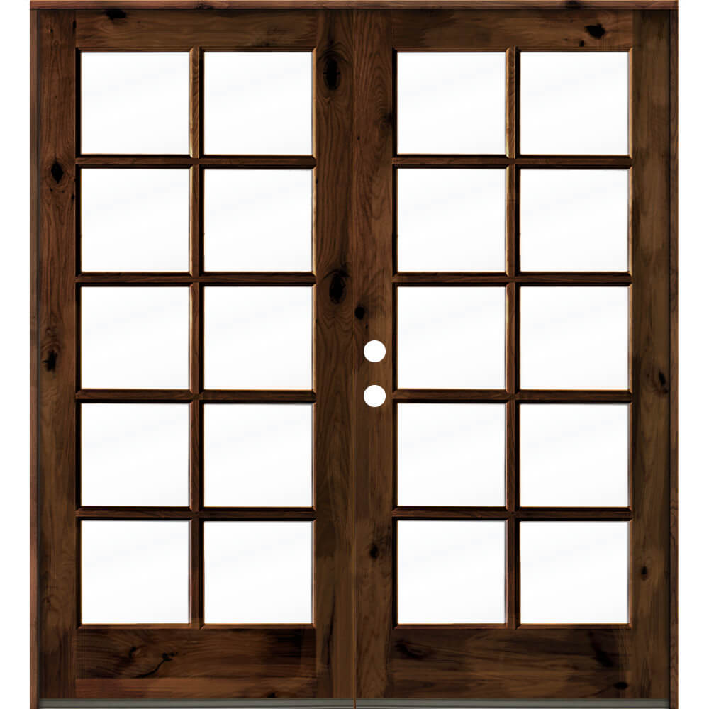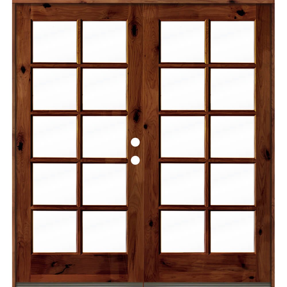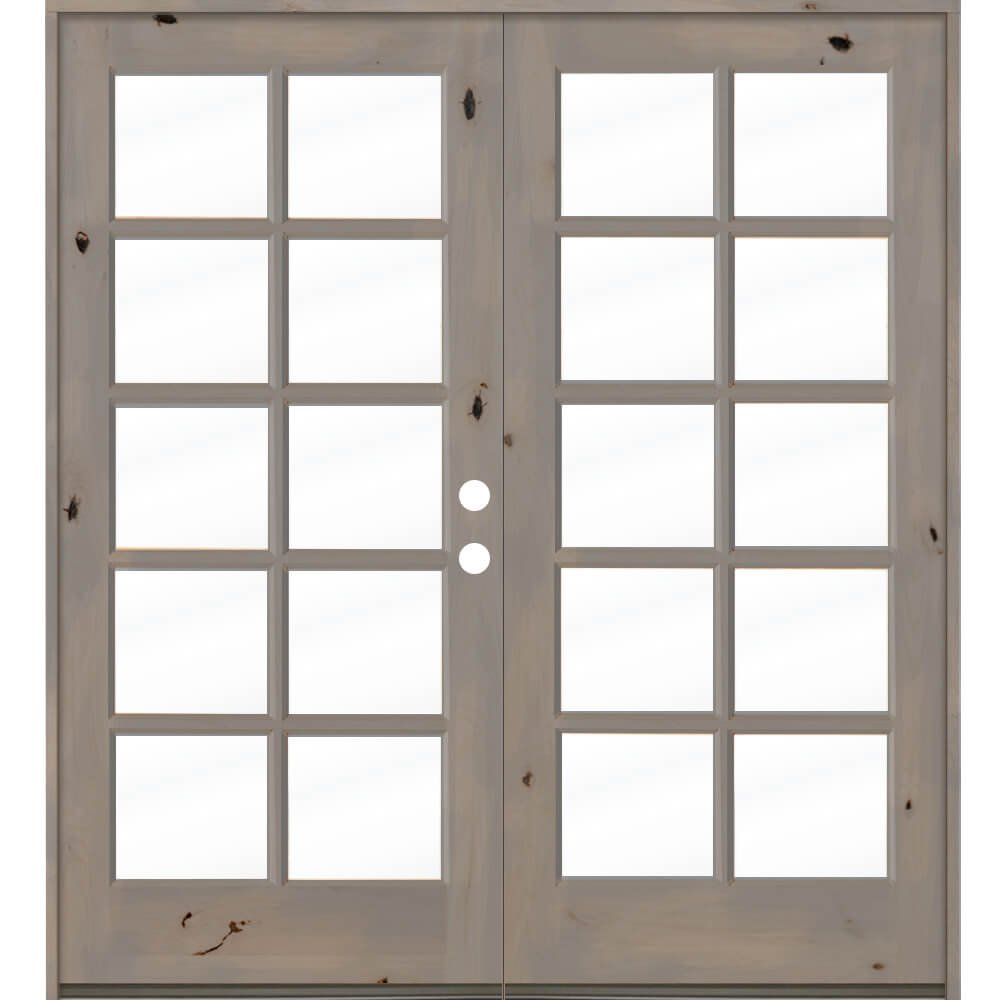Improve the natural light in your home with the eye-catching Rustic Knotty Alder 10 Lite Clear Glass Window Exterior Double French Door from Krosswood Doors. This timeless wood door features unique knotting, natural wood grain, and twenty insulated low-E clear glass panels to transform your entryway. Customize your perfect door today with our selection of size, layout, and stain options.